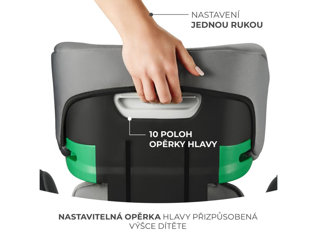 Opierku hlavy autosedačky môžete nastaviť jednou rukou. Má až 10 stupňov nastavenia, čo vám umožní dokonale prispôsobiť opierku hlavy výške vášho dieťaťa. Nezabudnite, že len správne nastavená dokáže účinne chrániť hlavu vášho dieťatka počas nárazu!