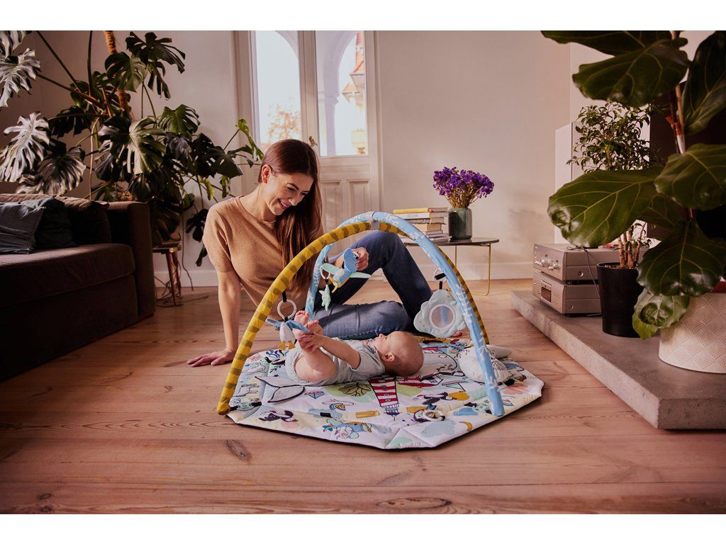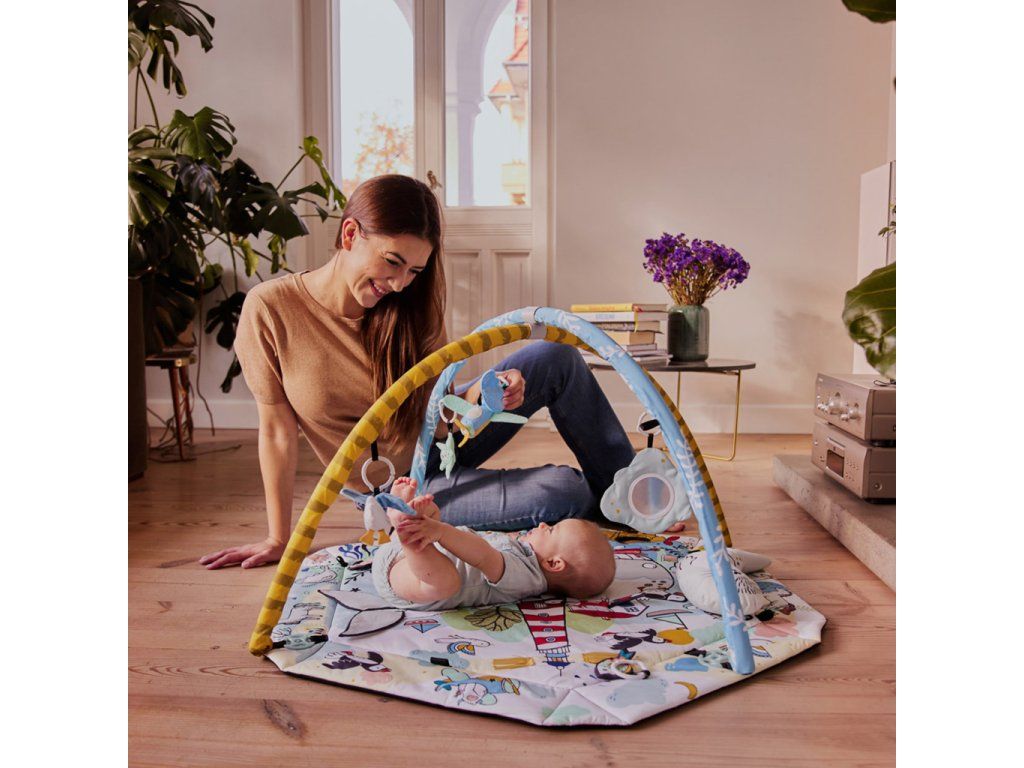 Hracia deka pre deti od narodenia. V sade sa nachádza 7 hračiek s rôznymi estetickými a kognitívnymi vlastnosťami: zrkadlo, šuštiaca kniha, 2 hryzadlá, pískací tiger, hrkálka a zvoniaci sloník.Vlastnosti: