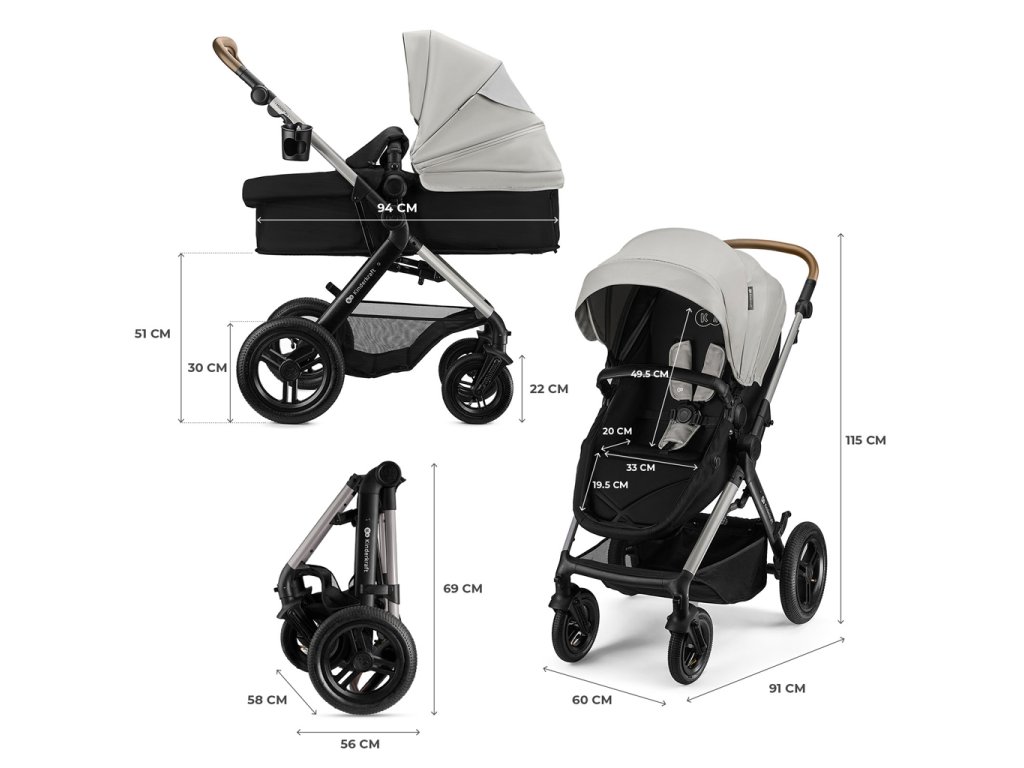 KINDERKRAFT Kočík kombinovaný 3v1 Moov 2 XL Air Grey
