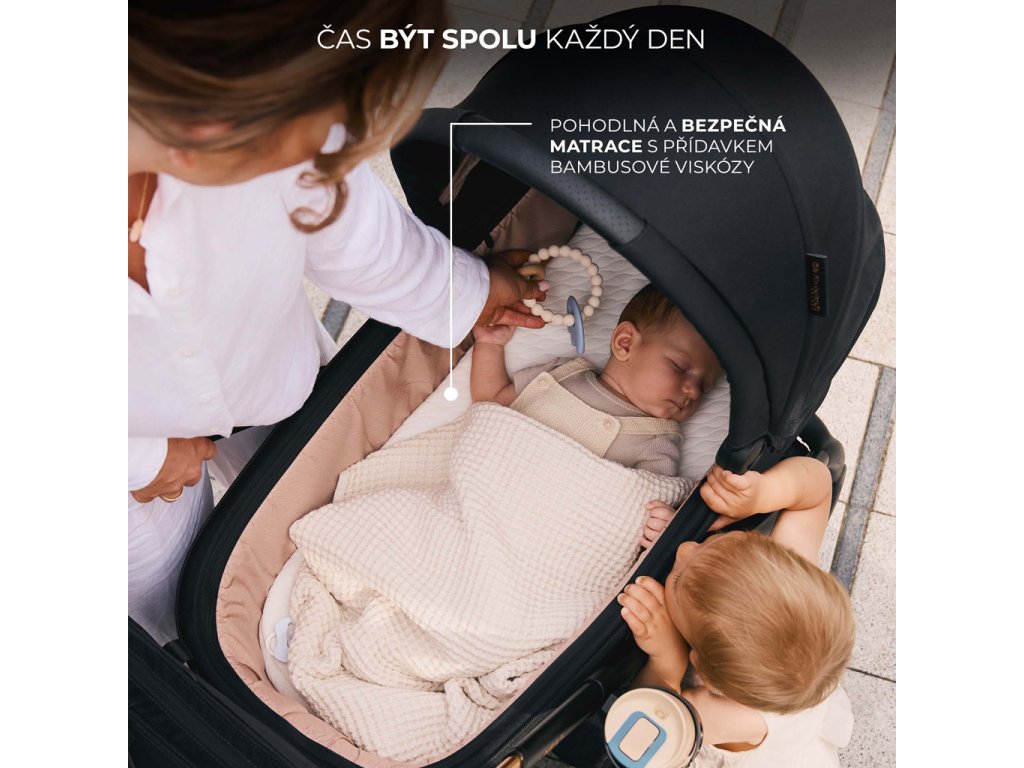 - Sada praktického príslušenstva: univerzálne adaptéry na autosedačku, nánožník pre vaničku a športovú časť, matrac do vaničky, držiak na pohár, pláštenka, sieťka proti hmyzu a nová prebaľovacia taška.