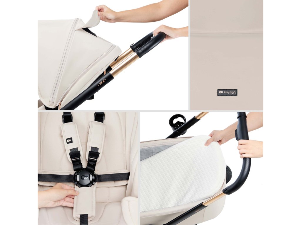 KINDERKRAFT Kočík kombinovaný Nea 2 2v1 Beige + Fusak 3v1 Jibot Horizontal Ink Black