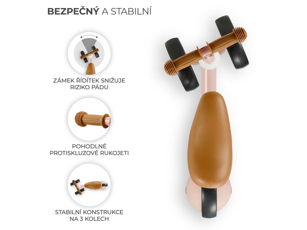 - Mini bicykel CUTIE je vybavený blokovaním stočenia riadidiel - rodič sa nemusí obávať nekontrolovaného pádu, keď sa dieťa začne učiť otáčať pri jazde.