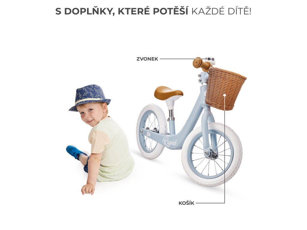 Objavte radosť z prechádzok v retro dizajne! Toto odrážadlo s košíkom sa určite bude páčiť deťom aj ich rodičom. Vďaka veľkým gumovým kolesám je ideálne na výlety po meste a aj na dobrodružstvá v lese. Dobre tlmia pri jazde na nerovnom teréne.Pohodlné sedlo poskytuje široký rozsah nastavenia výšky, takže odrážadlo rastie spolu s vaším dieťaťom. RAPID má tiež obmedzený uhol natočenia volantu, ktoré chráni vaše dieťa pred nekontrolovaným zatáčaním počas výuky jazdenia. A nízko posadený rám uľahčuje nasadanie a zosadanie. Odrážadlo RAPID, rovnako ako každé odrážadlo Kinderkraft, podporuje rozvoj rovnováhy a motoriky. Zároveň vo vašom dieťati vzbudí lásku k aktivitám na čerstvom vzduchu.