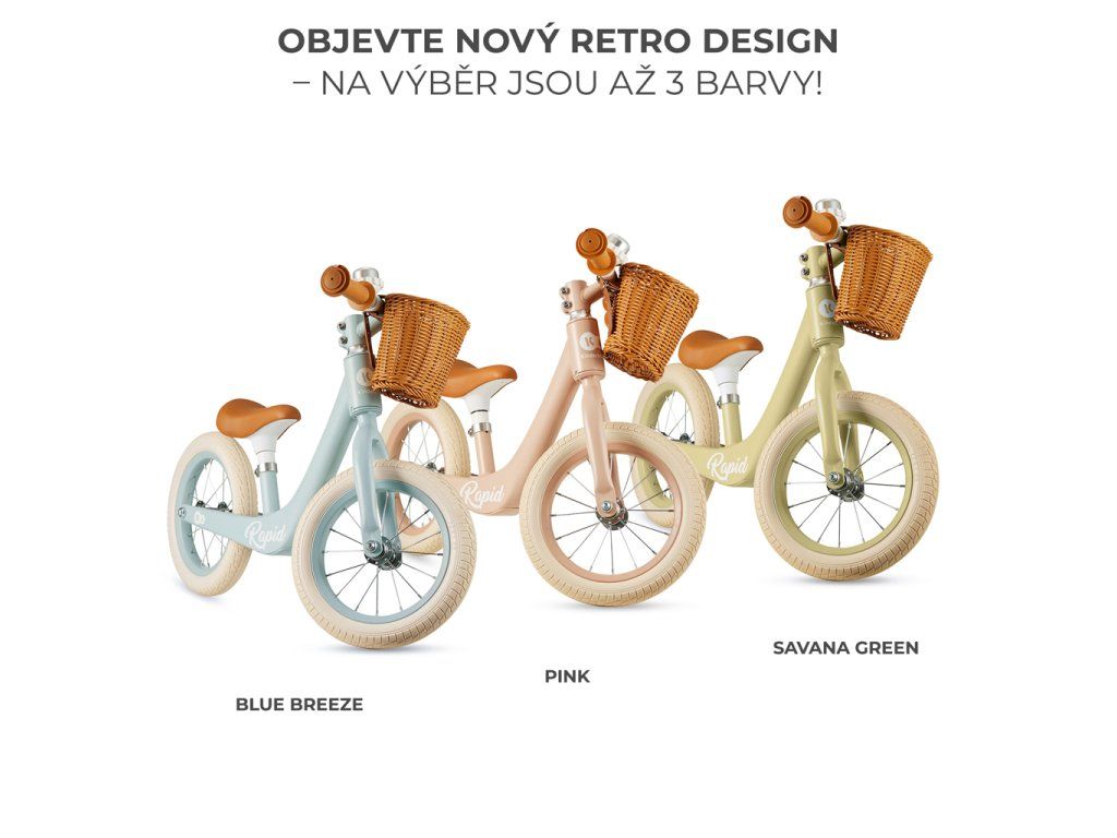 Objavte radosť z prechádzok v retro dizajne! Toto odrážadlo s košíkom sa určite bude páčiť deťom aj ich rodičom. Vďaka veľkým gumovým kolesám je ideálne na výlety po meste a aj na dobrodružstvá v lese. Dobre tlmia pri jazde na nerovnom teréne.Pohodlné sedlo poskytuje široký rozsah nastavenia výšky, takže odrážadlo rastie spolu s vaším dieťaťom. RAPID má tiež obmedzený uhol natočenia volantu, ktoré chráni vaše dieťa pred nekontrolovaným zatáčaním počas výuky jazdenia. A nízko posadený rám uľahčuje nasadanie a zosadanie. Odrážadlo RAPID, rovnako ako každé odrážadlo Kinderkraft, podporuje rozvoj rovnováhy a motoriky. Zároveň vo vašom dieťati vzbudí lásku k aktivitám na čerstvom vzduchu.