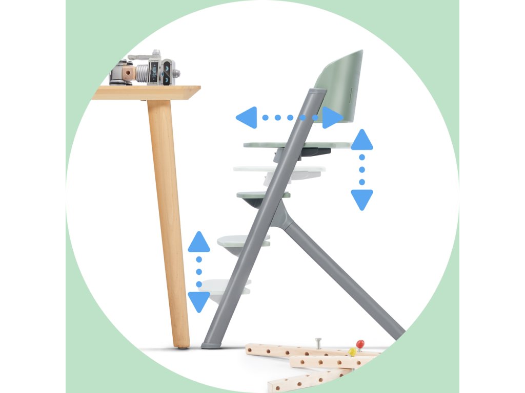 - jednoduché nastavenie sedadla – 4-stupňové nastavenie výšky sedadla umožňuje dieťaťu jesť a hrať sa pri stoloch alebo kuchynských ostrovoch s rôznou výškou.