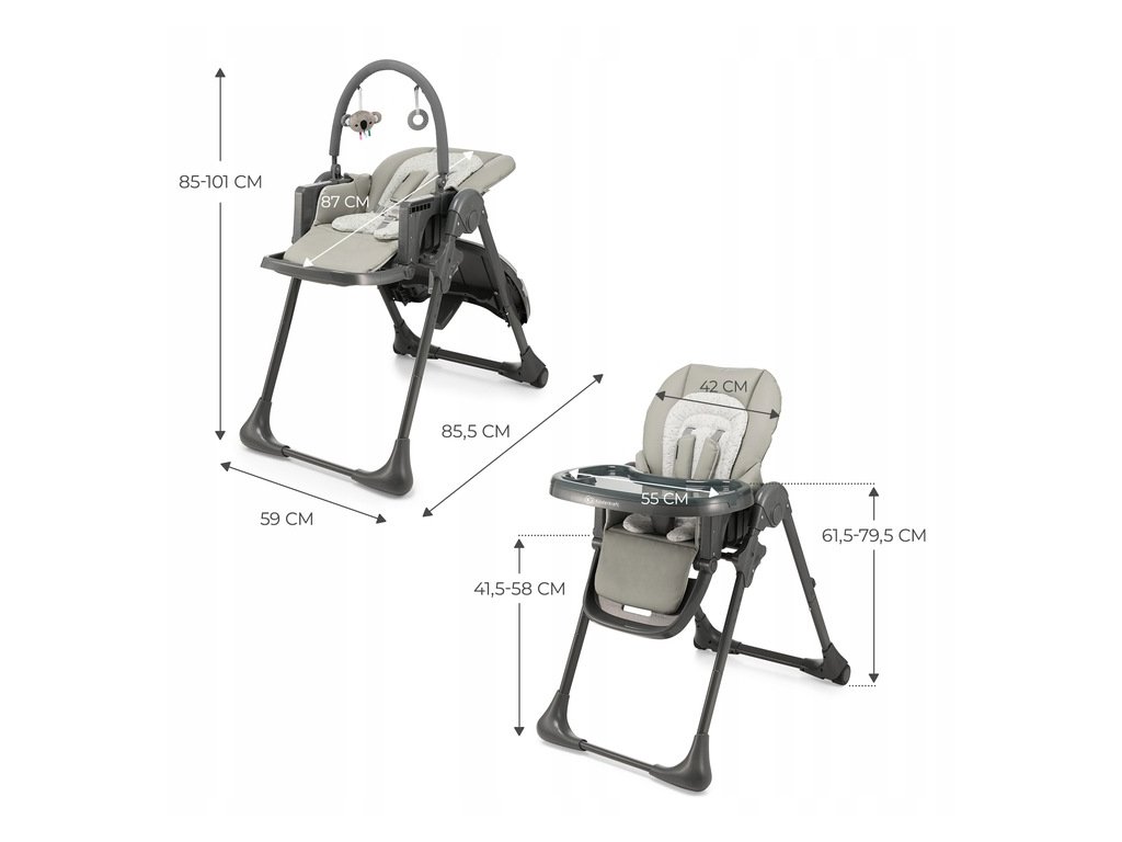 Chcete tráviť čo najviac času so svojím dieťaťom? TUMMIE vám v tom pomôže - je to skladacia vysoká stolička 2 v 1 vhodná pre deti od narodenia. Je to možné vďaka vhodnému nastaveniu operadla a opierky nôh. Stolička sa dodáva s odnímateľnou vložkou s opierkou hlavy, ktorá tiež podporuje chrbticu dieťaťa a zabezpečuje správne držanie tela od prvých mesiacov života. TUMMIE je ideálna pre všetkých rodičov, ktorí chcú začať rozširovať stravu svojho dieťaťa od 4 mesiacov. Naučiť sa jesť bude ešte jednoduchšie vďaka správnej polohe a nastaviteľným bezpečnostným pásom.K dispozícii je sedem možností výškového nastavenia, ktoré umožňujú prispôsobiť stoličku akémukoľvek stolu. Vďaka tomu môže byť vaše dieťa od prvých dní života vo vašej blízkosti. Má nastaviteľný podnos s odnímateľnou vrchnou časťou, ktorú možno ľahko umyť pod tečúcou vodou - celá stolička je vyrobená z materiálov, ktoré sa ľahko čistia vlhkou handričkou. TUMMIE sa dá tiež zložiť takmer na plocho, čo výrazne uľahčuje skladovanie. Má univerzálny, nadčasový štýl, takže sa rýchlo stane skutočnou ozdobou vašej domácnosti.