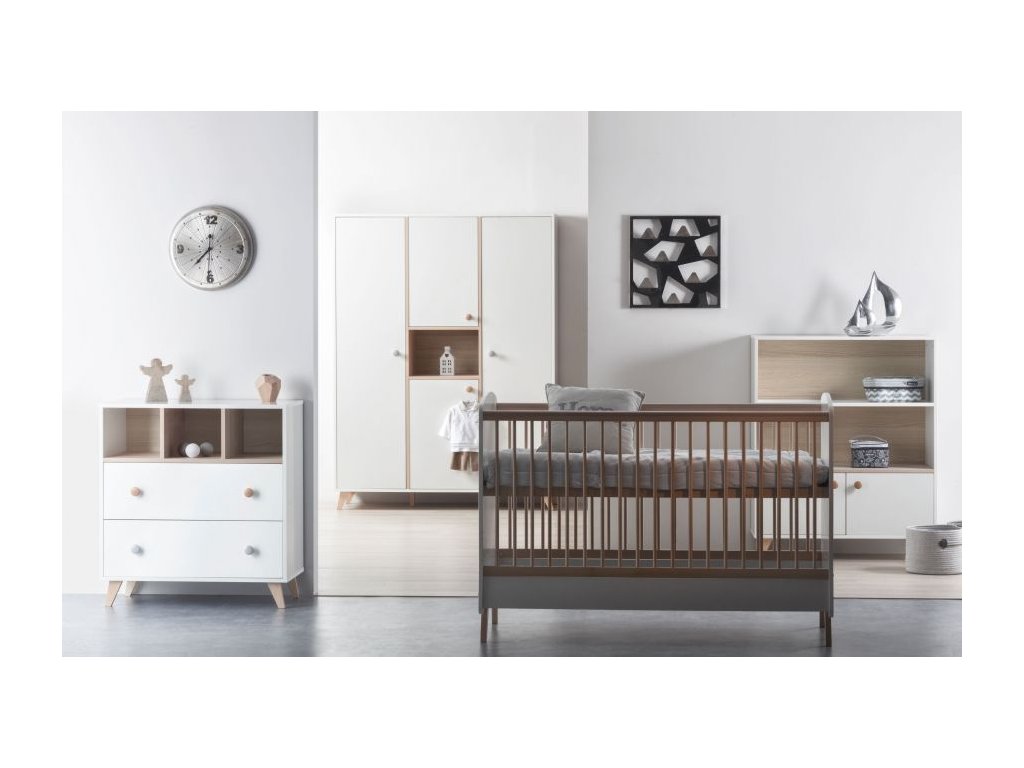 Komoda poskytne dostatok miesta na všetko potrebné pre Vaše bábätko, v hornej časti otvorená polička pre veľmi frekventované potreby alebo pre vecí, po ktorých potrebujete siahnuť ospalá poslepiačky, nižšie dve zásuvky chrániace veci pred prachom. Komoda je optimálne vysoká.