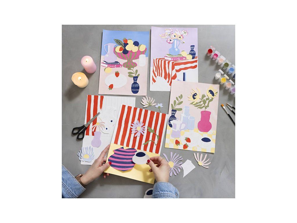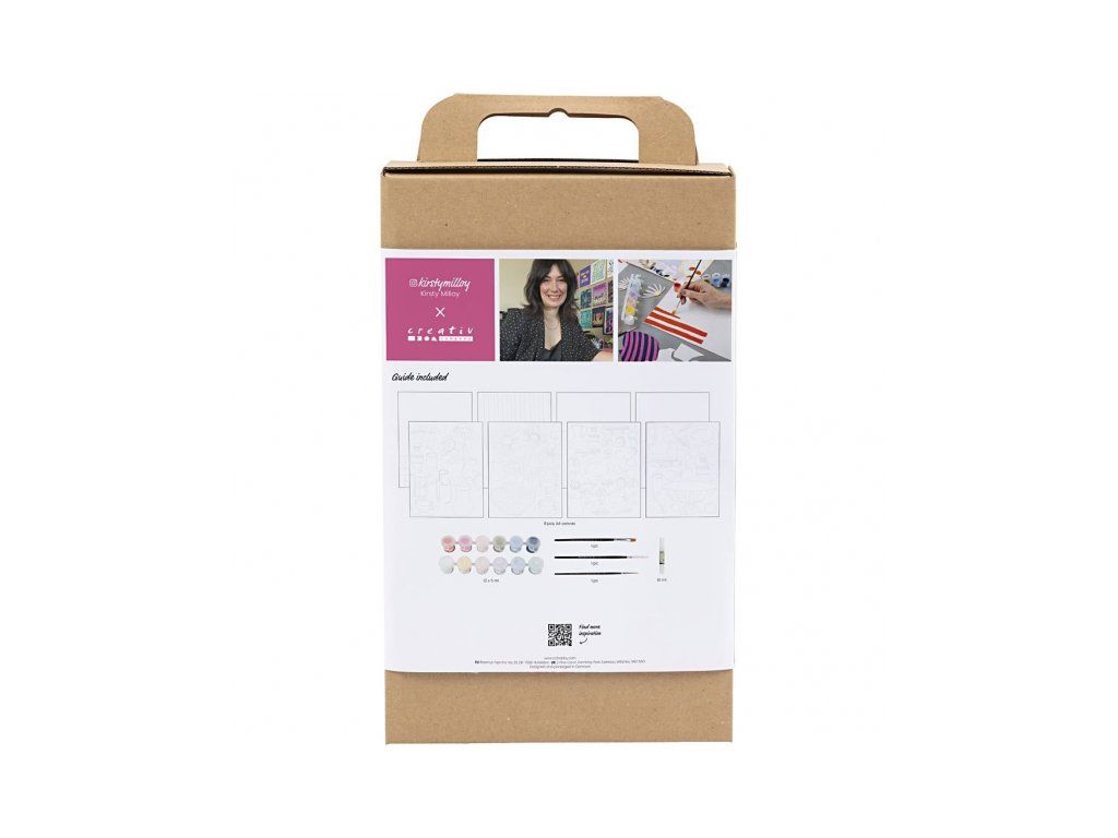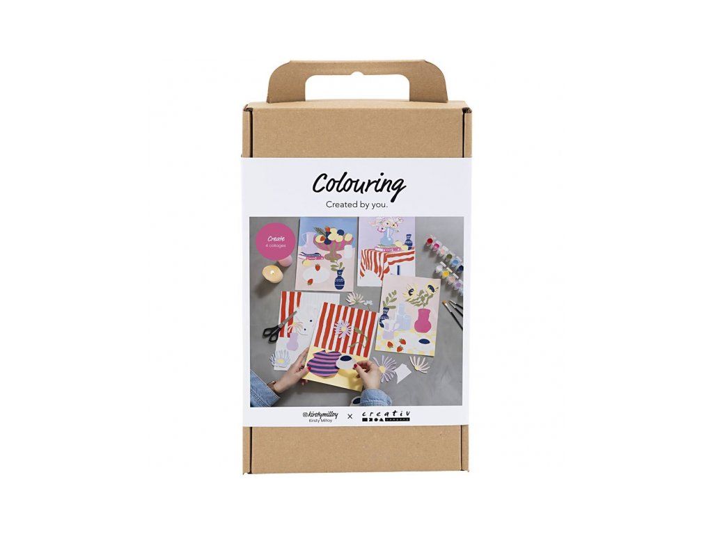 Originálna kreatívna sada na maľovanie a tvorbu koláží s kvetinovými motívmi. Táto sada vám umožní vytvoriť štyri jedinečné obrazy na plátne – kombináciou maľovaného pozadia a vystrihaných motívov vzniknú štýlové koláže, ktoré krásne oživia interiér. Súprava je vytvorená v spolupráci s Kirsty Milloy a obsahuje všetko potrebné vrátane návodu. Projekt je jednoduchý a vhodný aj pre začiatočníkov: namaľujete pozadie, vyfarbíte motívy, vystrihnete ich a poskladáte do finálnej koláže podľa vlastného vkusu.