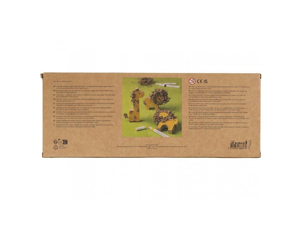 Originálna sada drevených safari zvieratiek na dozdobenie a hranie. Roztomilé figúrky zo masívneho dreva si deti môžu vyzdobiť podľa vlastnej fantázie – farbami, fixkami alebo kreatívnymi hmotami. Zvieratká sú dosť pevné na hranie a zároveň vyzerajú skvele ako dekorácia v detskej izbe.