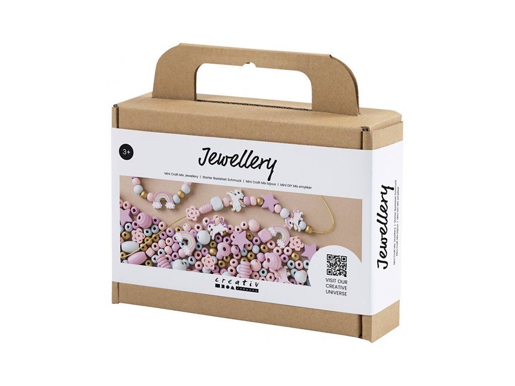 Originálna kreatívna súprava na výrobu korálkových šperkov. Navliekaním drevených korálikov si deti môžu vytvoriť si vlastné šperky v krásnych pastelových farbách podľa svojej nálady a štýlu. Ideálne tvorenie pre malých kreatívcov, ktorí si chcú vyrobiť náramky, náhrdelníky alebo napríklad retiazku na členok.