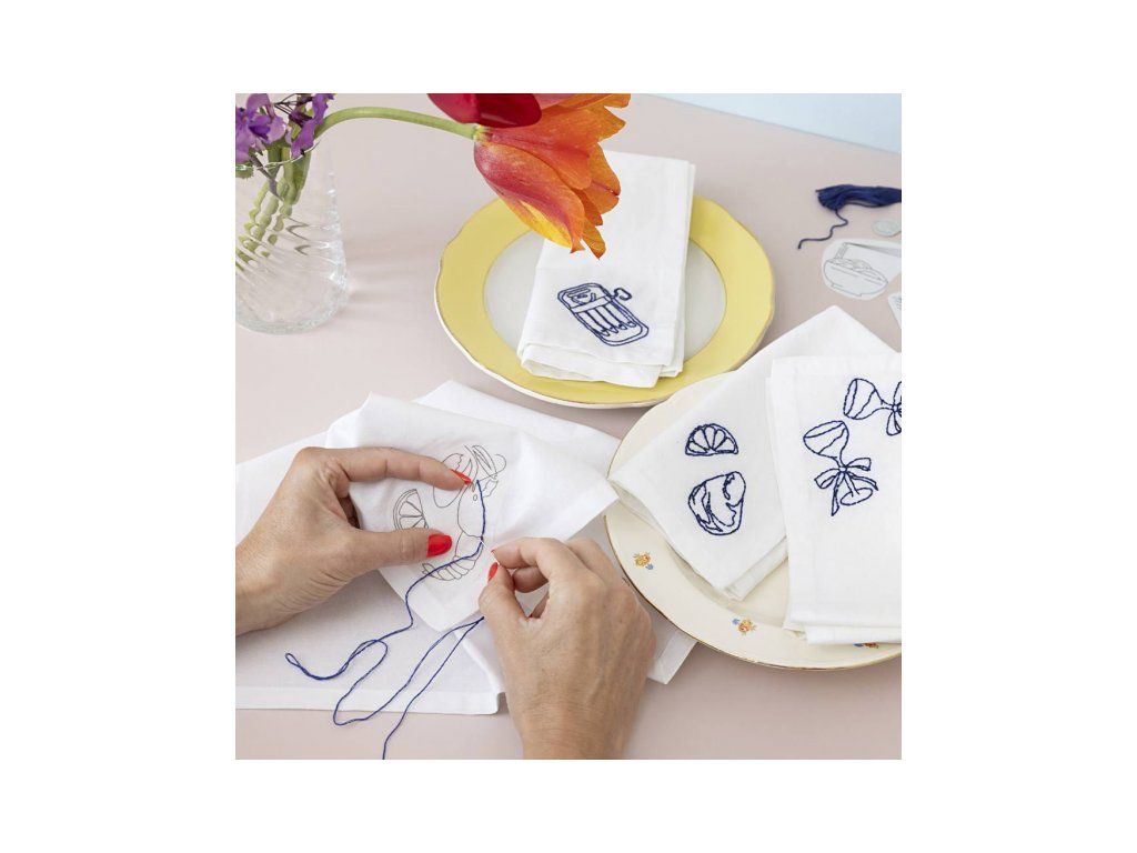 Originálna kreatívna sada na vyšívanie textilných obrúskov. Táto sada vám umožní vyšiť si vlastné látkové obrúsky a vytvoriť osobité prestieranie s elegantným detailom. V balení nájdete všetko potrebné pre štyri obrúsky vrátane návodu. Práca je jednoduchšia, než sa zdá: vyšívacie samolepky umiestnite na obrúsok, vyšijete motív podľa šablóny a po dokončení sa šablóny vo vode rozpustia. Výsledkom sú štyri jedinečné obrúsky, ktoré dodajú stolovaniu osobný štýl a urobia dojem na hostí.
