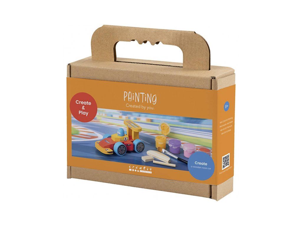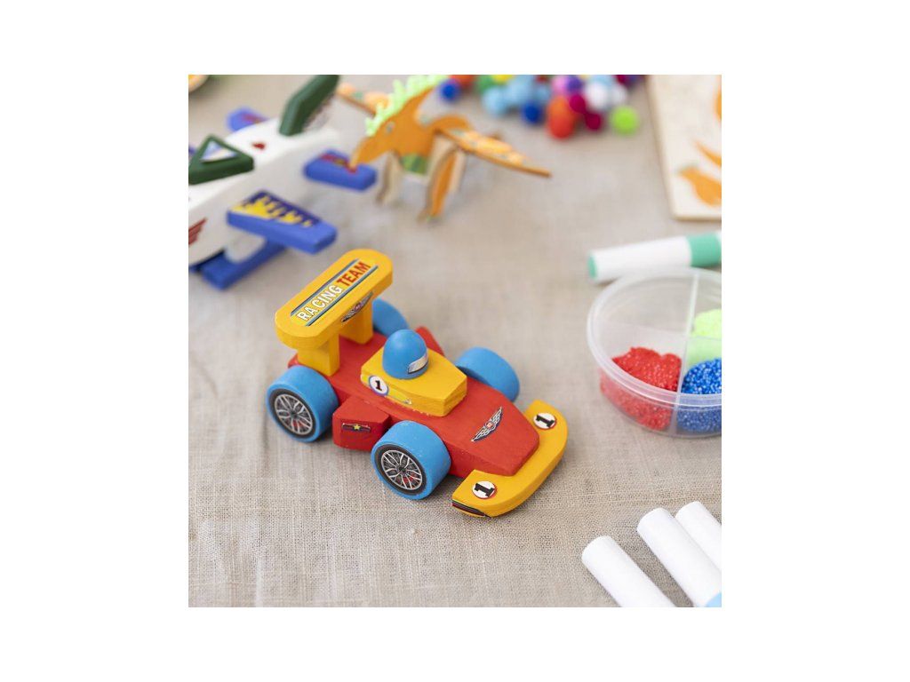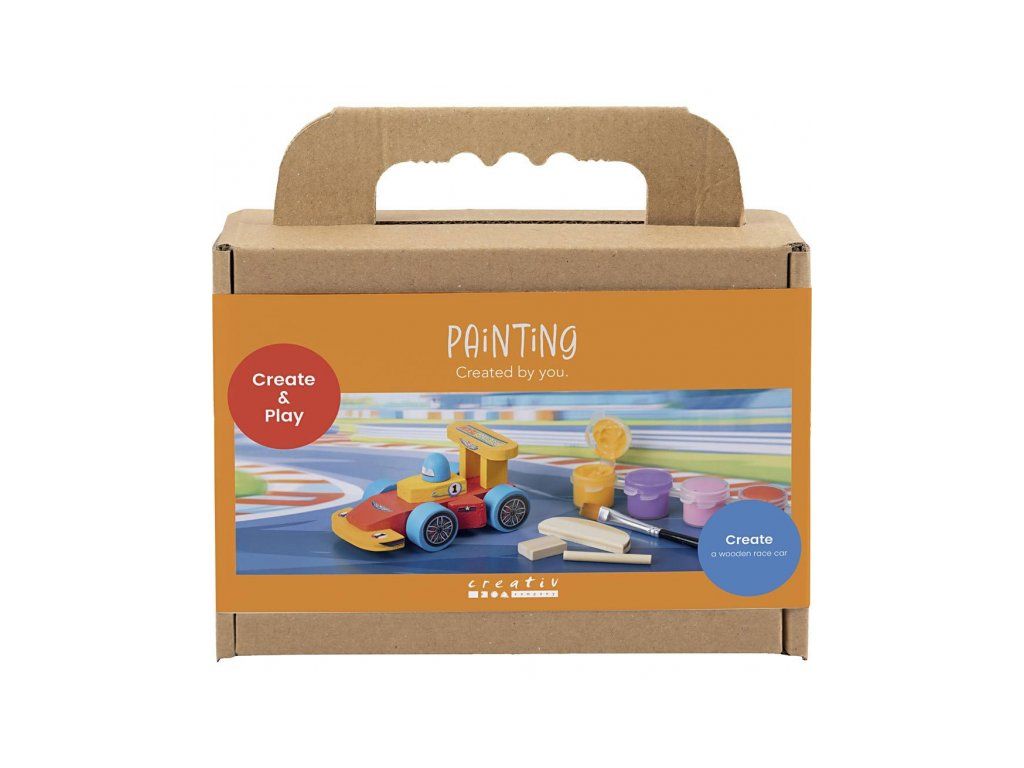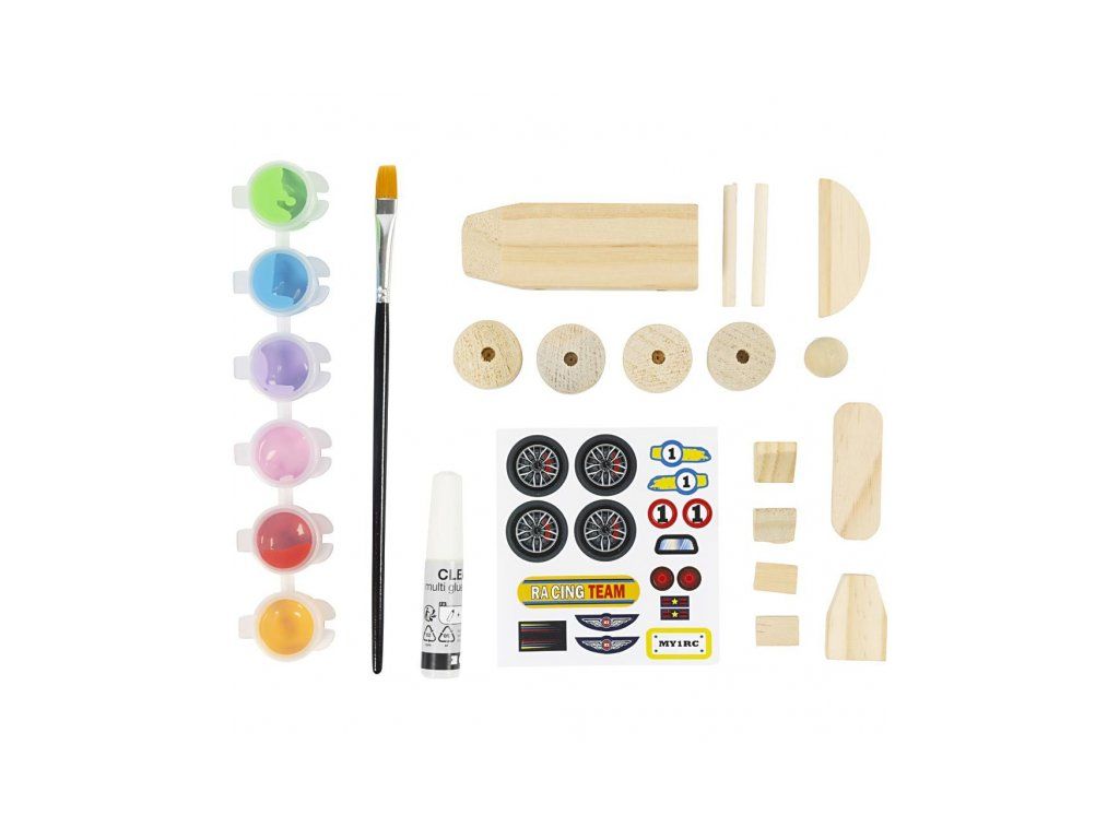 Originálna kreatívna súprava na výrobu dreveného závodného auta deťom umožní postaviť si vlastnú hračku od úplného začiatku – najprv jednotlivé diely nafarbia, nechajú zaschnúť, potom ich zlepia a nakoniec dozdobia samolepkami. Výsledkom je jedinečné autíčko pripravené na hranie aj vystavenie v detskej izbe.