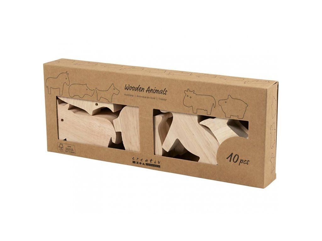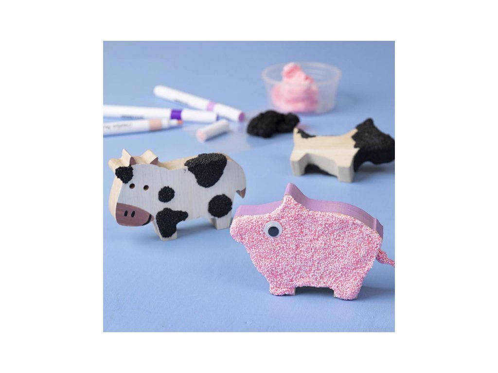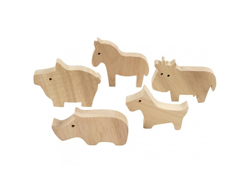 Originálna sada drevených zvieratiek z farmy na dozdobenie a hranie. Roztomilé figúrky zo masívneho dreva si deti môžu vyzdobiť podľa vlastnej fantázie – farbami, fixkami alebo kreatívnymi hmotami. Zvieratká sú dosť pevné na hranie a zároveň vyzerajú skvele ako dekorácia v detskej izbe.