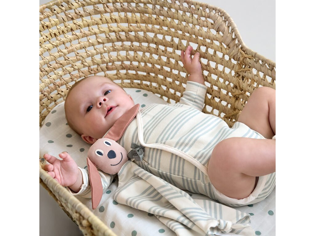 Nemecká značka LÄSSIG je lídrom v predaji doplnkov pre mamičky a deti v západnej Európe. Ich výrobky sa vyznačujú veľmi vysokou úrovňou spracovania a tiež praktickosťou, vďaka ktorej si výrobky tejto značky obľúbili zákazníci vo viac než päťdesiatich krajinách sveta. Samostatnou kapitolou sú potom materiály, ktoré sa vyznačujú nielen špičkovou kvalitou a odolnosťou, ale aj ekologickosťou a napomáhajú k dosiahnutiu nadčasového dizajnu. Spoločnosť Lässig GmbH je častým zberateľom významných ocenení. Výsledky svojho úspešného pôsobenia si však spoločnosť nenecháva len pre seba a podporuje celý rad charitatívnych a ekologických projektov.Cuddle Cloth je nevyhnutným pomocníkom pri zaspávaní detí. Vďaka variabilnej štruktúre, farbám a tvarom motivuje rovnako k rozvoju detskej motoriky. Malá roztomilá hlavička v tvare zvieratka spolu s rohmi látky zakončenými uzlíkmi motivujú dieťa k úchopom, hladeniu a cmúľaniu. Sú stimulované zrak a hmat dieťaťa, ktoré sa zároveň učí vec pozorovať.