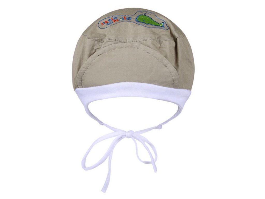 Detská jarno-letná bavlnená čiapočka-baret New Baby Little Whale. Čiapočka s kšiltkem sa zaväzuje na šnúrky, zdobí ju obrázok veľryby a nápis little whale. Čiapočka je ušitá z priedušného materiálu, preto je vhodná pre jarné aj letné dni. Dobre drží na hlavičke a nepadá. Moderný dizajn pristane všetkým malým chlapcom. Zloženie: 100% bavlna. Obvod okolo hlavičky cca 50 cm.Dodatočné parametre