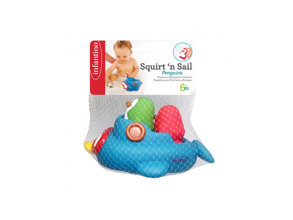 Loďka v podobe maxi tučniaka, ktorý vozí dva malé striekacie tučniaky, je originálna a zábavná hračka do kúpeľa. Vymýšľajte spolu s dieťaťom počas kúpania príbehy o tom, čo všetko tučniaky na svojich výletoch prežívajú a užívajte si spoločne príjemné chvíle pred spaním.