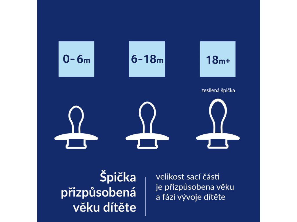 - Dynamický cumlík sa vďaka unikátnej konštrukcii zo silikónu rôznej hrúbky naťahuje a sťahuje podľa rytmu satia dieťaťa. Vďaka tomu chráni jeho sací reflex a nemá nepriaznivý vplyv na dojčenie. Symetrický tvar špičky vychádza z tvaru bradavky naplnenej mliekom, ktorá poskytuje bábätku známy pocit podobný pocitu z prsníka.