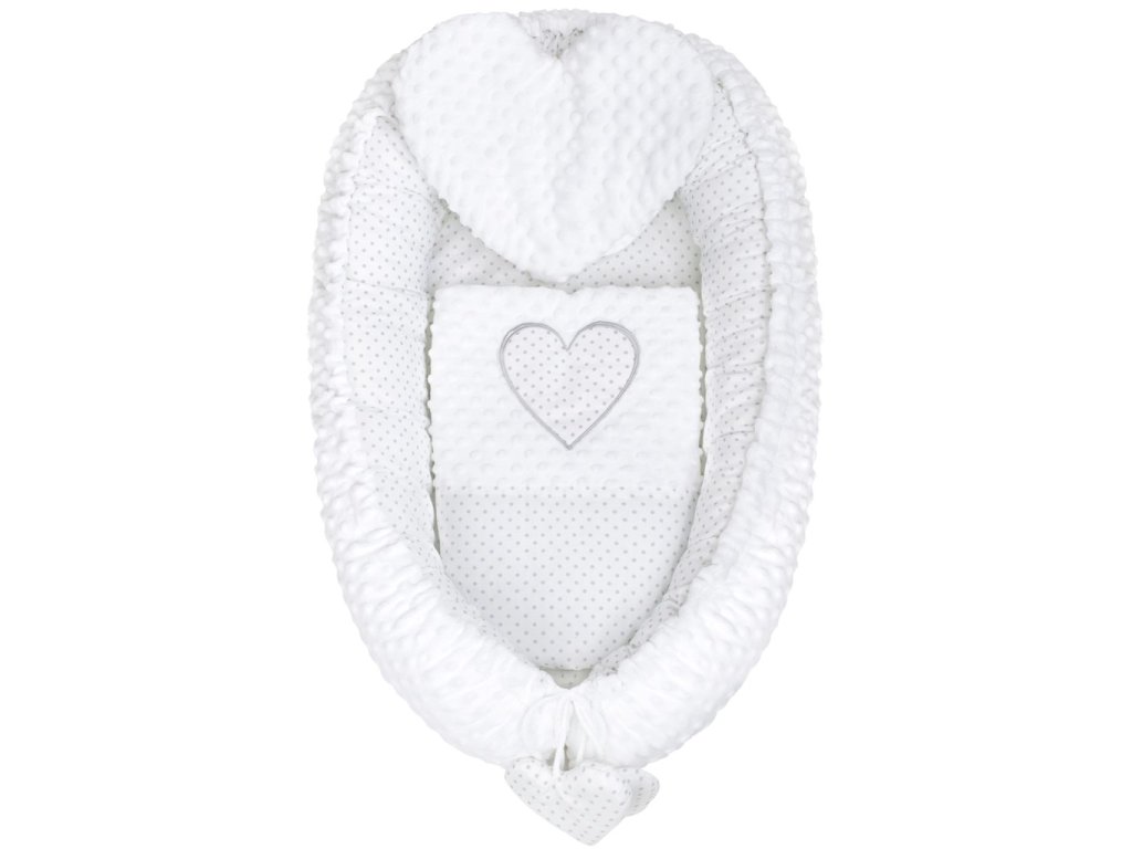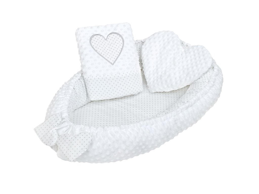 Luxusné hniezdočko s vankúšikom a perinkou New Baby z Minky Srdiečko biele