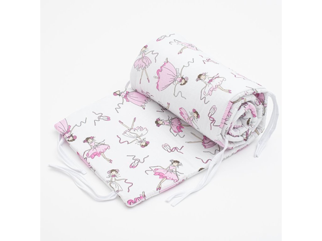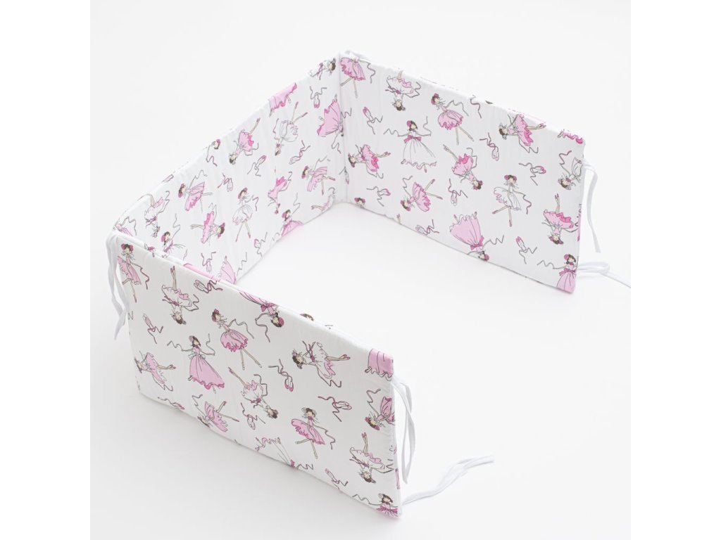 Praktický mantinel do postieľky New Baby Ballerina Bella s potlačou tancujúcej baletky. Je vyrobený z mäkkého, príjemného materiálu. Zloženie: 100% bavlna. Výplň: 100% polyester. Upevnenie k postieľke za pomocou stúh. Rozmer: cca 150 cm.Tieto výrobky sú bezpečné, pretože: