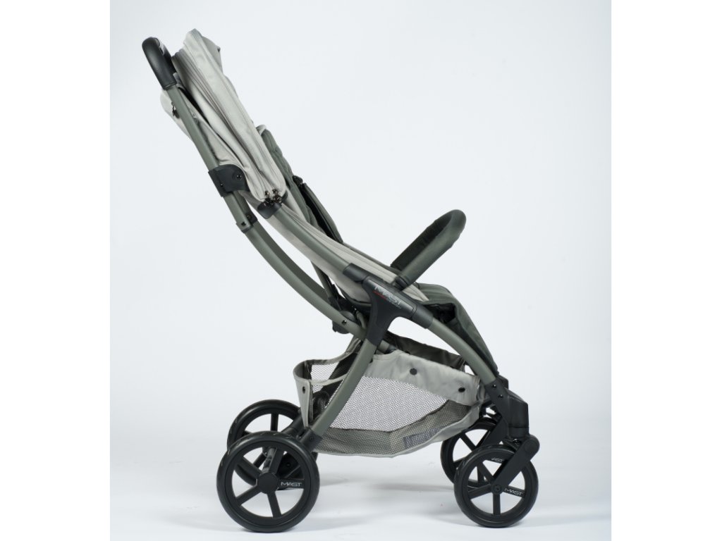 Kočík M.2x disponuje mechanizmom umožňujúcim skladanie a rozkladanie kočíka len jednou rukou. V zloženom stave navyše samostatne stojí na podlahe.
