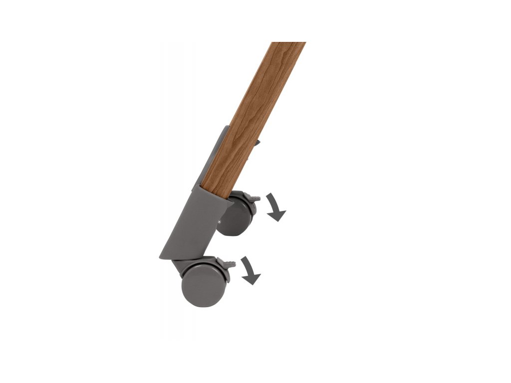 Štyri kolieska, na predných nohách otočné s možnosťou areatácie uľahčujú manipuláciu so stoličkou. Pokiaľ stoličku nepoužívate, je možné ju zložiť do kompaktného plochého tvaru na uloženie.