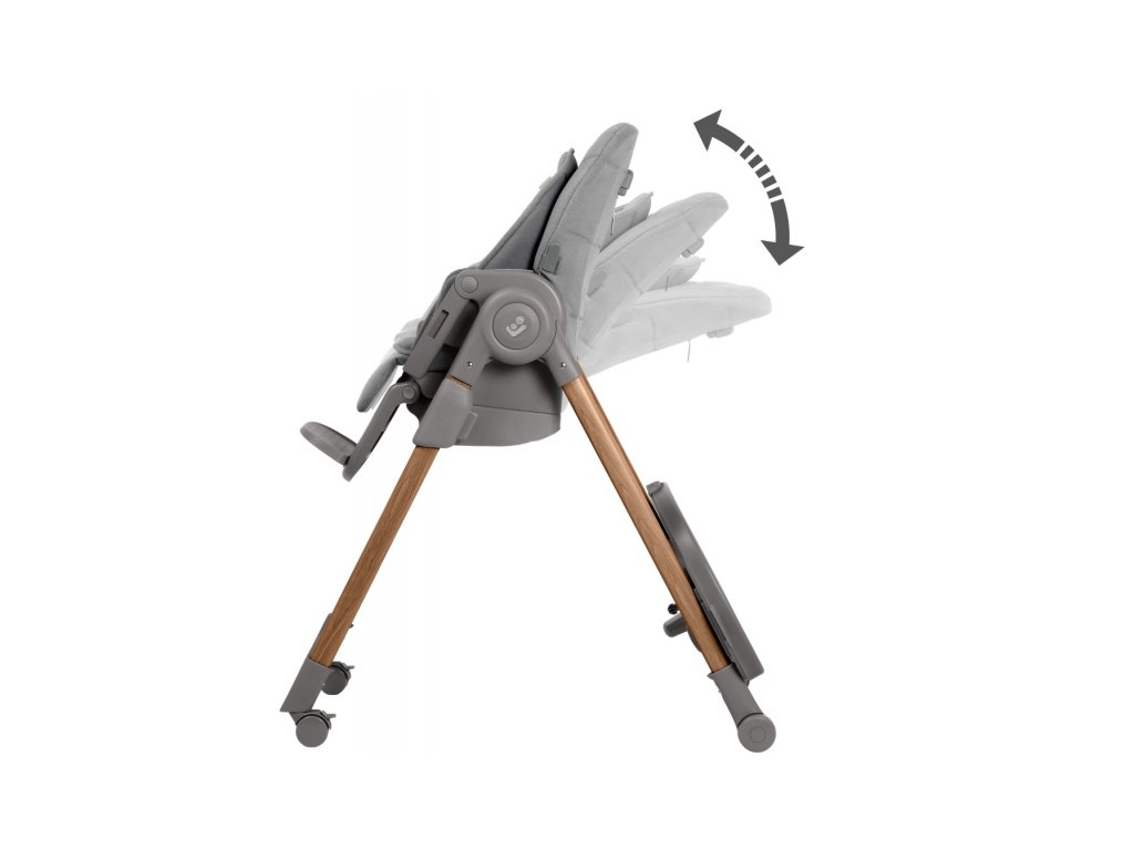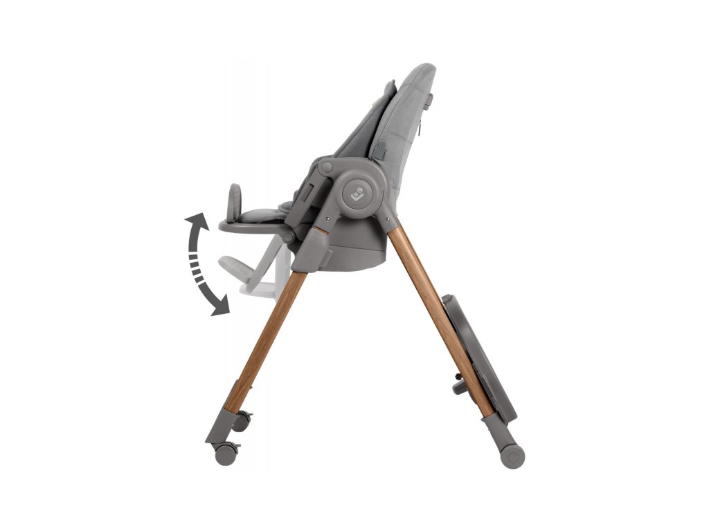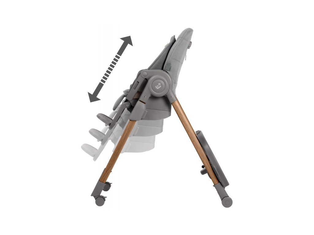 Stolička ponúka 9 nastavení výšky a je tak vhodná takmer ku každému stolu. Zadnú opierku môžete nastaviť do 5 rôznych polôh od ležania po sedenie. Variabilitu nastavenia dopĺňajú 4 varianty polohovania nôh a 2 pozície podpierky na nohy.