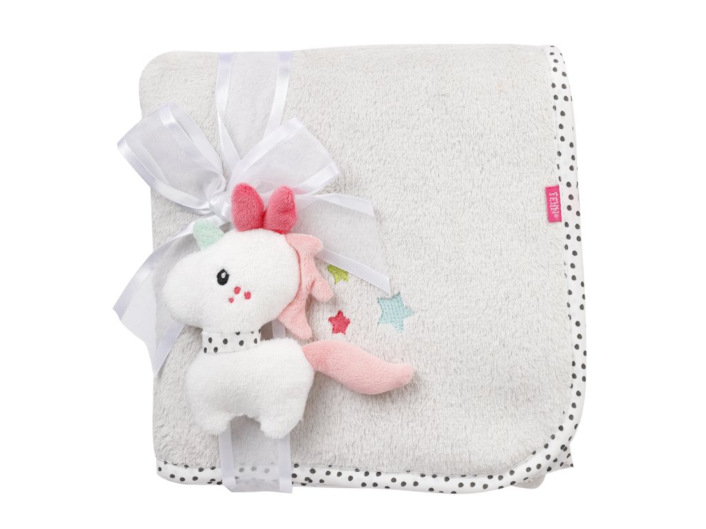 Mäkká deka jednorožec je určená ako podložka na lezenie, prikrývka či zvinutý muchláčik v jednom a zakaždým dieťatku zaisťuje pocit pohody.