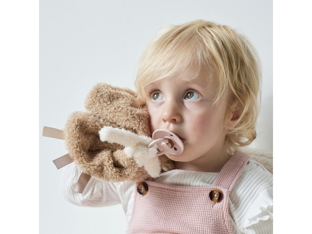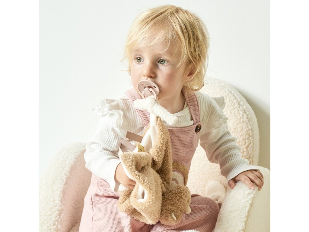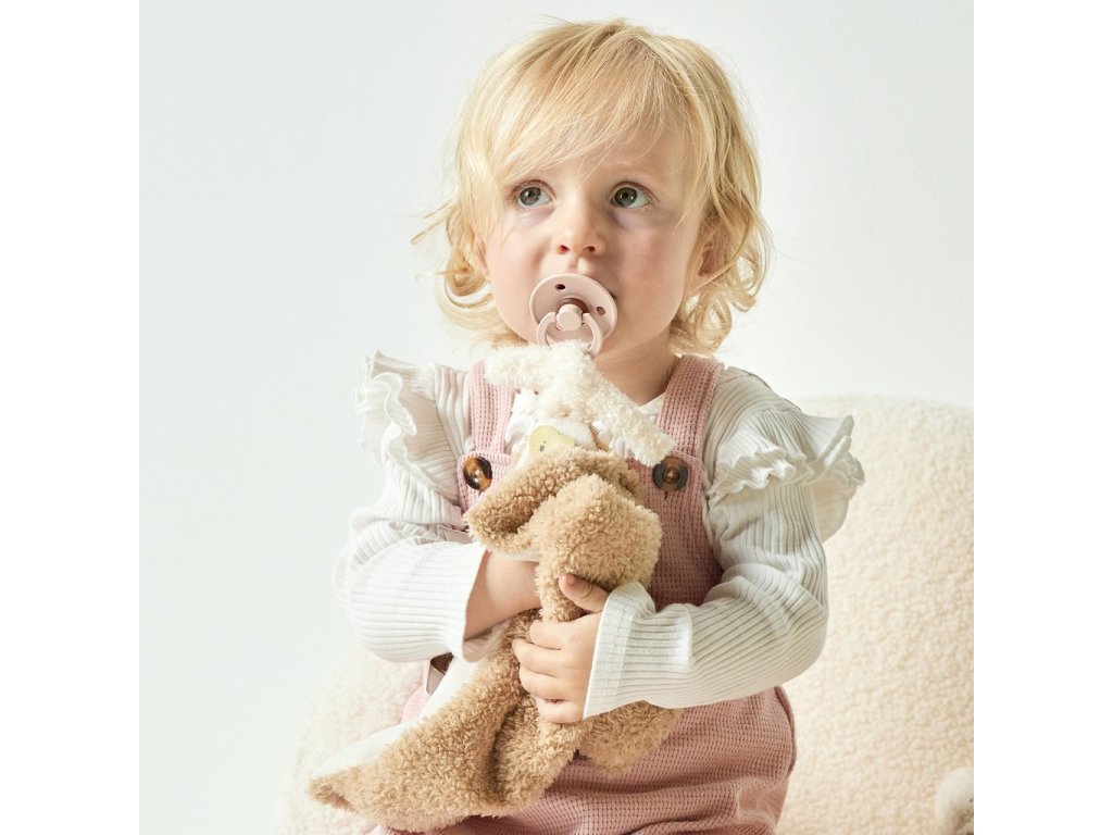 Náš maznáčik je nerozlučný kamarát vášho bábätka už od narodenia – prináša pocit istoty, pokoja a pohodlia v každej situácii. Je ideálny na maznanie v postieľke, upokojenie na cestách či hranie v ohrádke.Mäkučká dečka s milým motívom ponúka množstvo úchopových možností, ktoré podporujú rozvoj zmyslov a jemnej motoriky. Dieťatko môže pohodlne chytať hlavičku zvieratka alebo zaujímavé visačky po stranách. Praktické pútko umožňuje pripevniť cumlík, aby bol vždy po ruke.