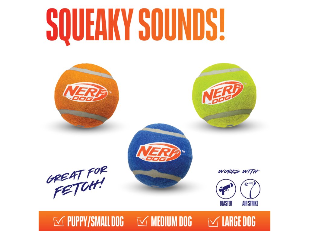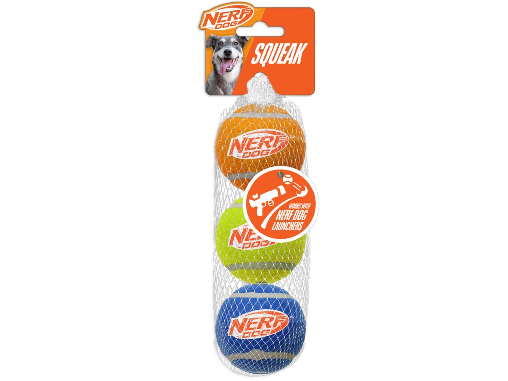 NERF DOG Hračka pre psov 3 ks pískacích tenisových loptičiek 6,5 cm