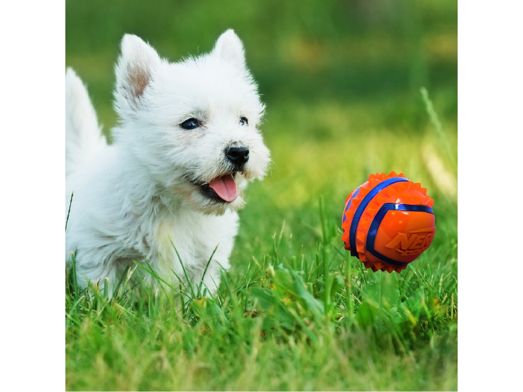 Hračka v tvare loptičky má približný priemer 9 cm a je určená pre aktívnu hru s vašim psom – či už ide o hádzanie, aportovanie alebo nosenie. Vyrobená je z termoplastickej gumy (TPR), ktorá je pružná, odolná a vhodná na pravidelné používanie. Povrch loptičky je pokrytý výstupkami, ktoré zlepšujú úchop psa aj majiteľa a zároveň pomáhajú pri čistení psích zubov počas hry.Hračka vyniká farebným kontrastným prevedením, vďaka ktorému je dobre viditeľná vo vonkajšom prostredí - na tráve, v parku či na piesku. Je vhodná pre malé až stredné plemená, ktoré majú radi hru aportovanie a aktívny pohyb.