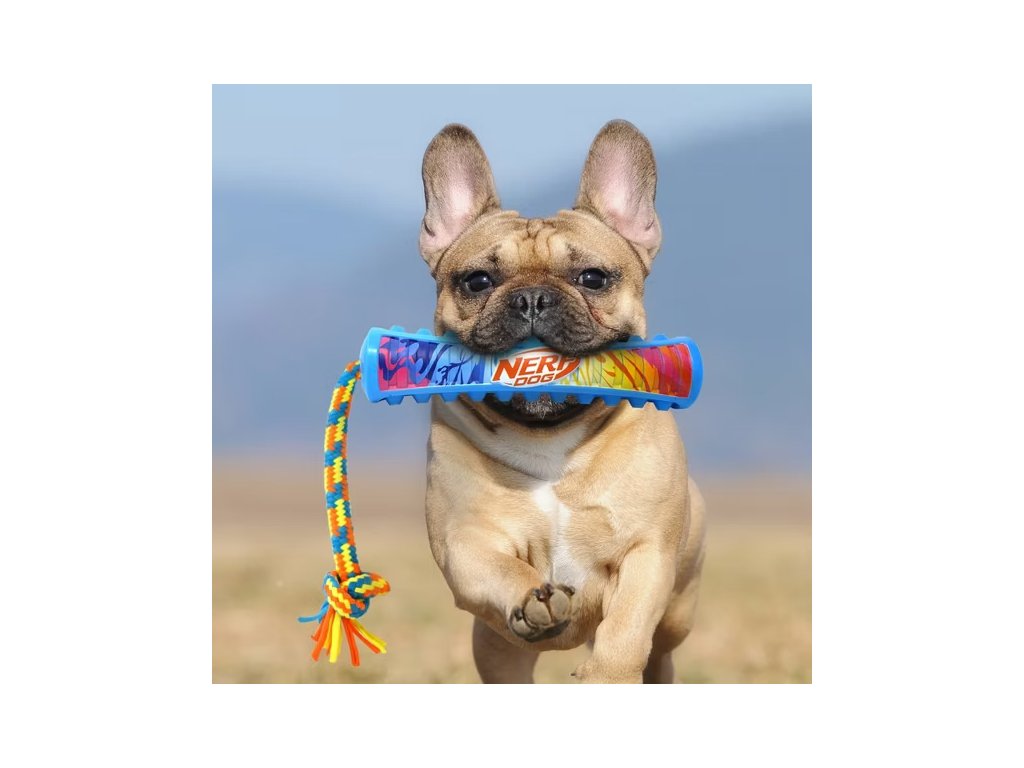 Nerf Dog Color Blast Stick s lanom je ideálny na preťahovanie! Je navrhnutá tak, aby vydržala veľa hryzenia a ťahania. Rukoväť z lana pomáha vášmu psovi udržať pevný úchop pri hraní s vami alebo iným psím kamarátom. Táto hračka vydáva pískavé zvuky, ktoré psy milujú!Vlastnosti: