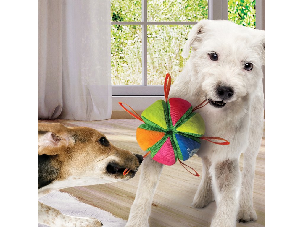 - Vďaka vstavaným nylonovým popruhom nie je loptička určená len na aportovanie - táto hračka ponúka aj hru s preťahovaním, nosením a interaktívnu zábavu s majiteľom.