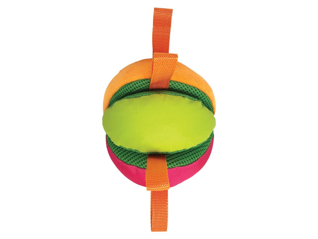 Pohodlné pútka na uchopenie: loptička je vybavená niekoľkými nylonovými popruhmi, takže je ideálna pre ťahanie a aportovanie.