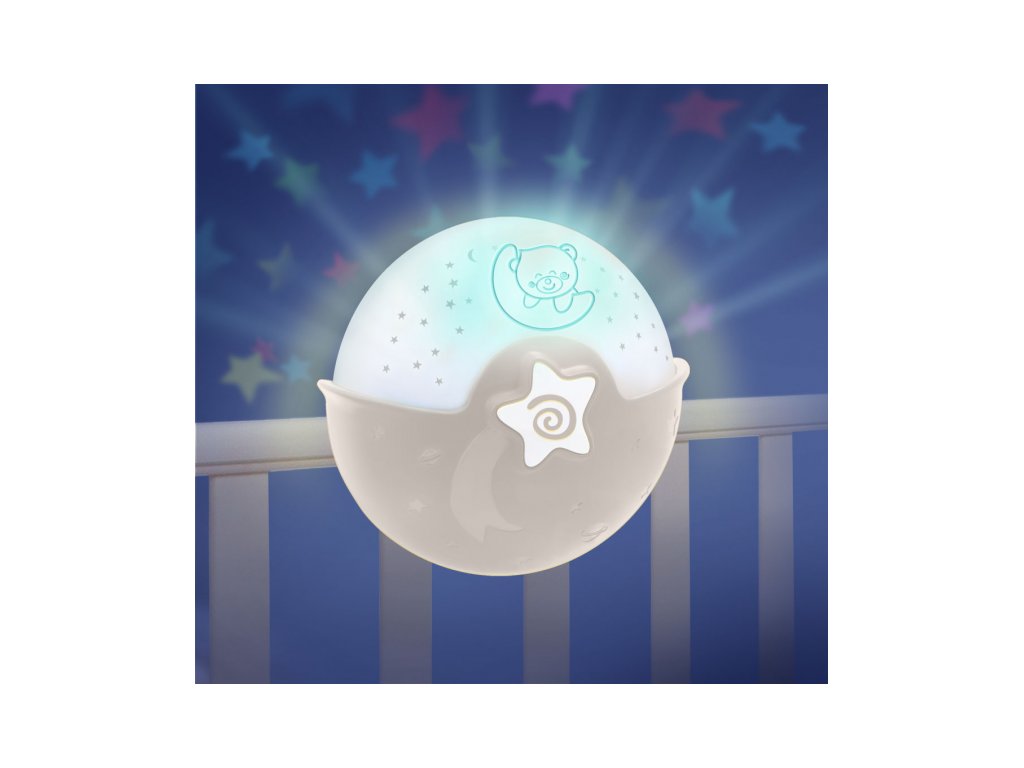 Nočná lampička s hudbou a svetelným projektorom pre pokojné zaspávanie vášho dieťaťa. Lampička premieta na stenu či strop hviezdičky a jemne tak osvieti detskú izbu.