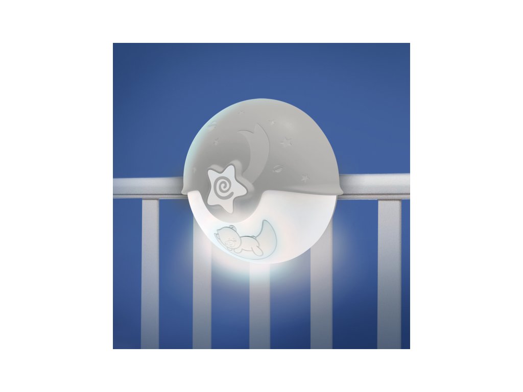 Lampička s projekciou môže byť pripevnená na detskú postieľku alebo postavená na nočný stolík.