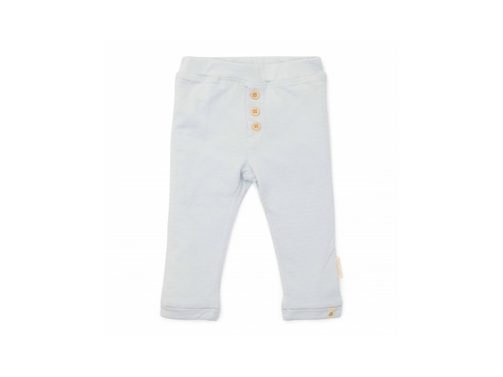 Nohavice z jemnej organickej bavlny s dekoratívnymi gombíkmi majú elastický pás na ľahké obliekanie dieťaťa.