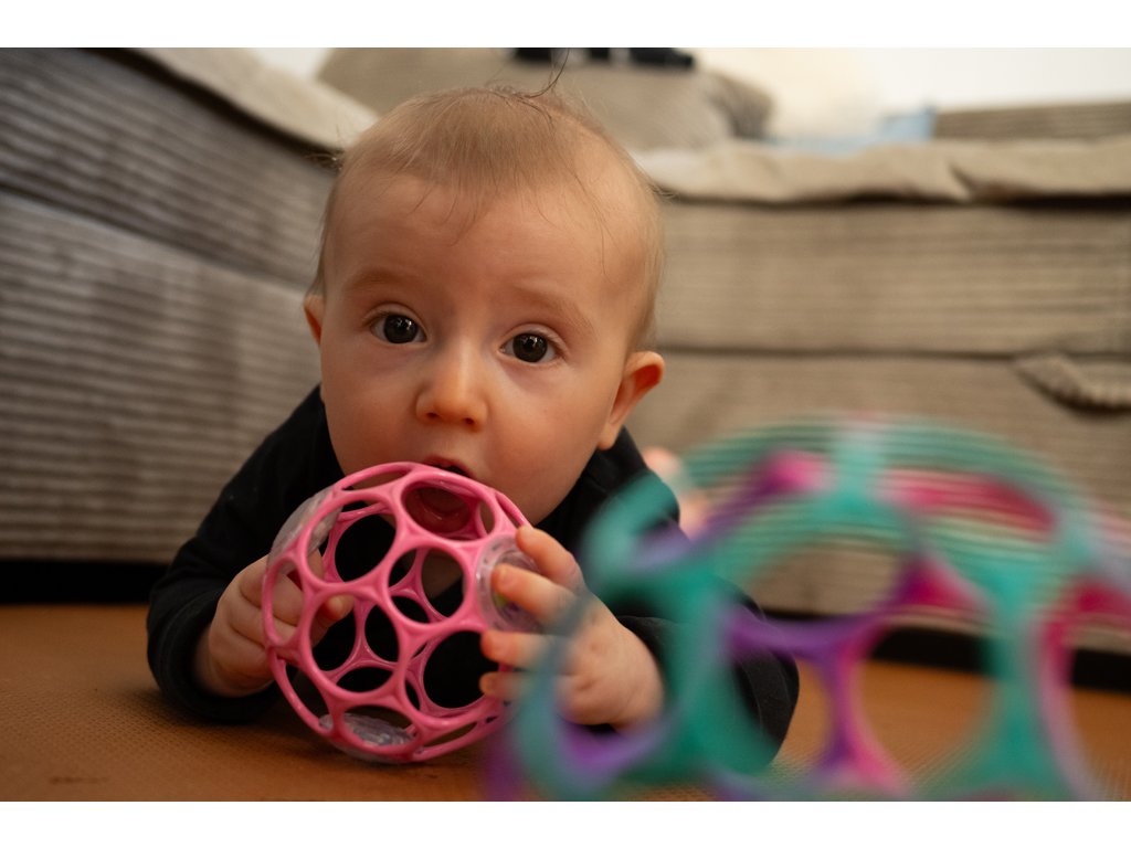 - jemný, ohybný plast robí Oball mäkkým a podmanivým