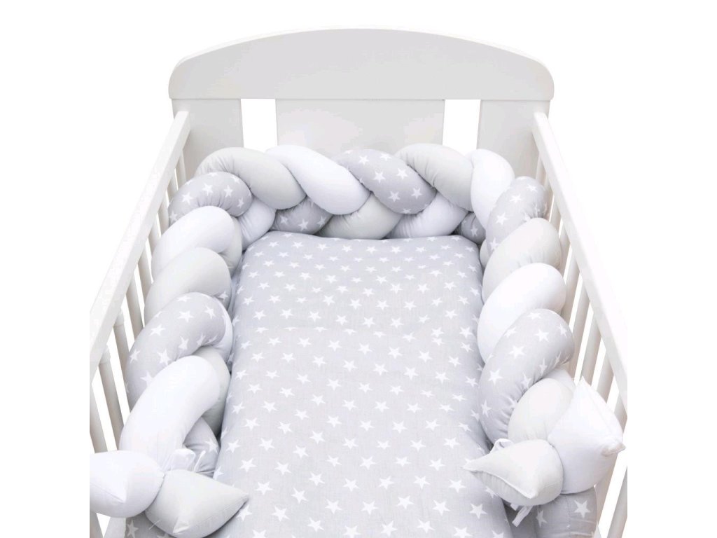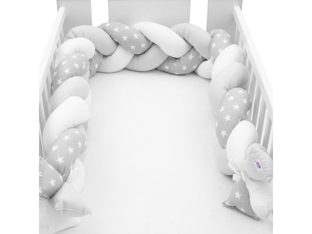 Ochranný mantinel do postieľky vrkoč New Baby Hviezdičky sivo-biely