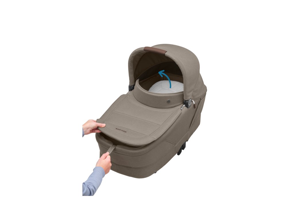 Priestranná vanička Maxi-Cosi Sense s obojstranným priedušným ClimaFlow matracom z pamäťovej peny a ventilačným okienkom poskytne vášmu bábätku pohodlie pri spánku a optimálne vetranie aj počas teplých letných dní. Integrovaný systém SoothingSlope umožňuje jednoduchým spôsobom vytvoriť ľahko naklonenú polohu na spanie, ktorá pomáha minimalizovať riziko refluxu. Veľká sklápacia strieška ochráni dieťa pred slnkom a nepriaznivým počasím. Pripevnenie na podvozok kočíka je veľmi jednoduché s pomocou priložených adaptérov. Vaničku je možné zložiť do kompaktného plochého tvaru a vďaka tomu ľahko skladovať či prepravovať.