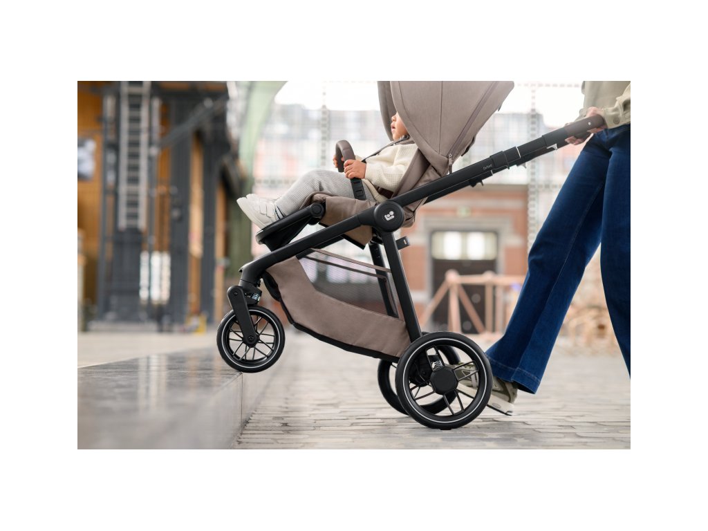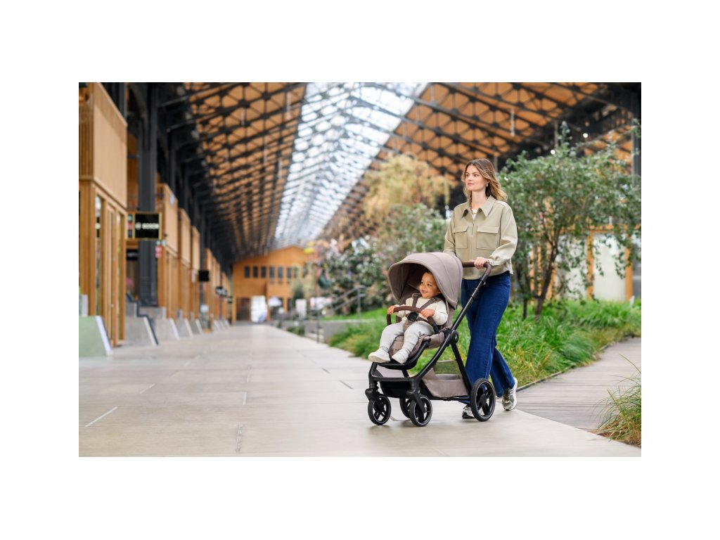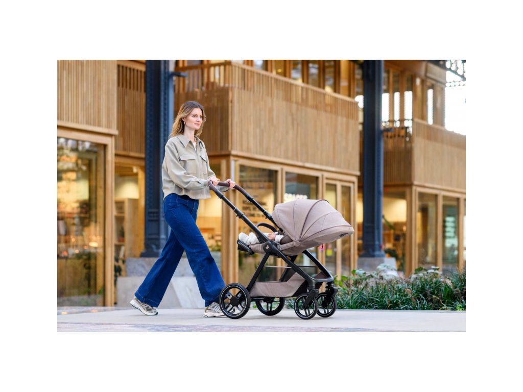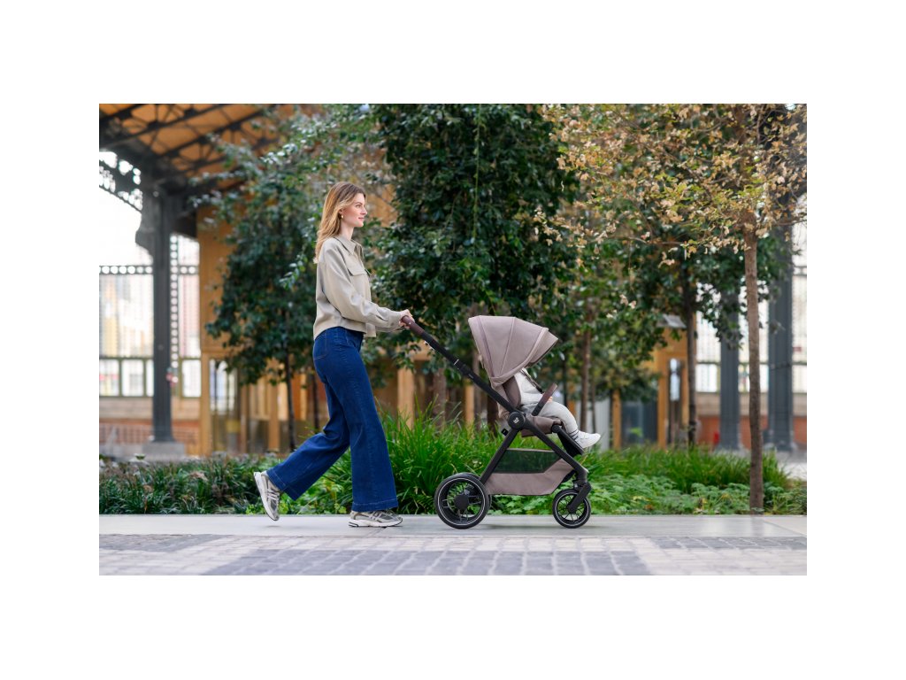 - Predné kolesá kočíka sú otočné o 360° a dajú sa ľahko zaaretovať pre plynulú jazdu