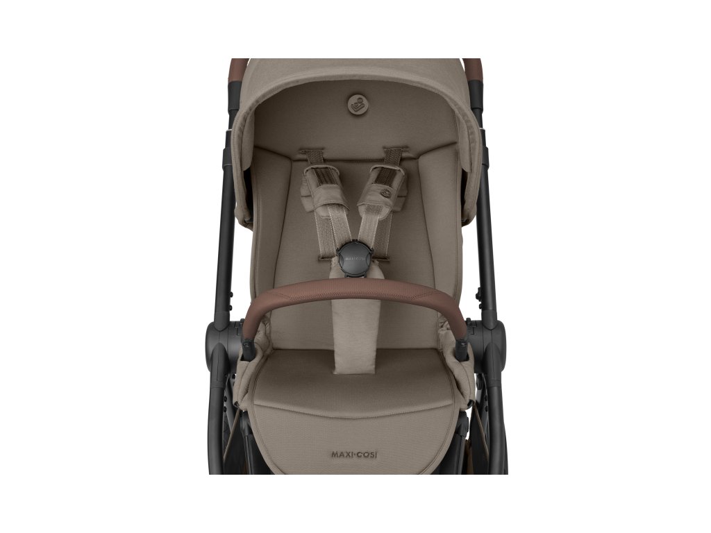 - 5-bodový bezpečnostný pás s polstrovanými chráničmi a magnetickým uzáverom umožňuje rýchle a bezpečné pripútanie dieťaťa
