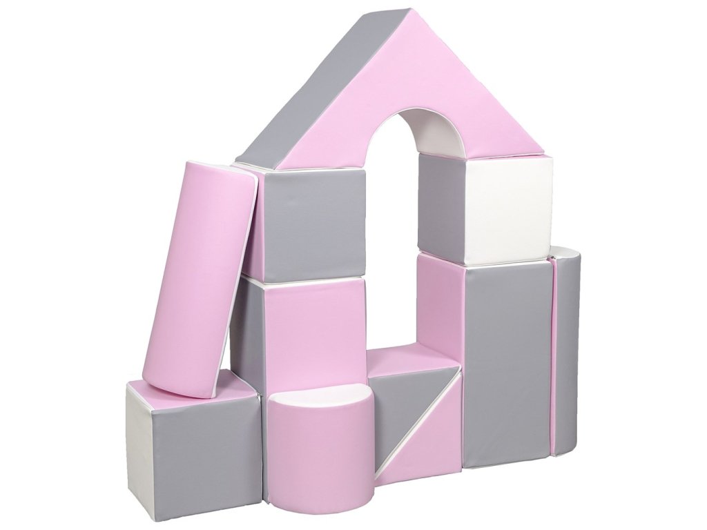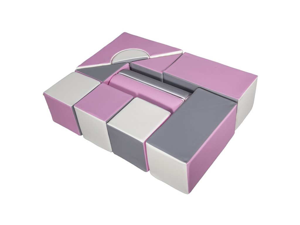 Penové kocky-obria stavebnica 11 ks white-light pink-grey