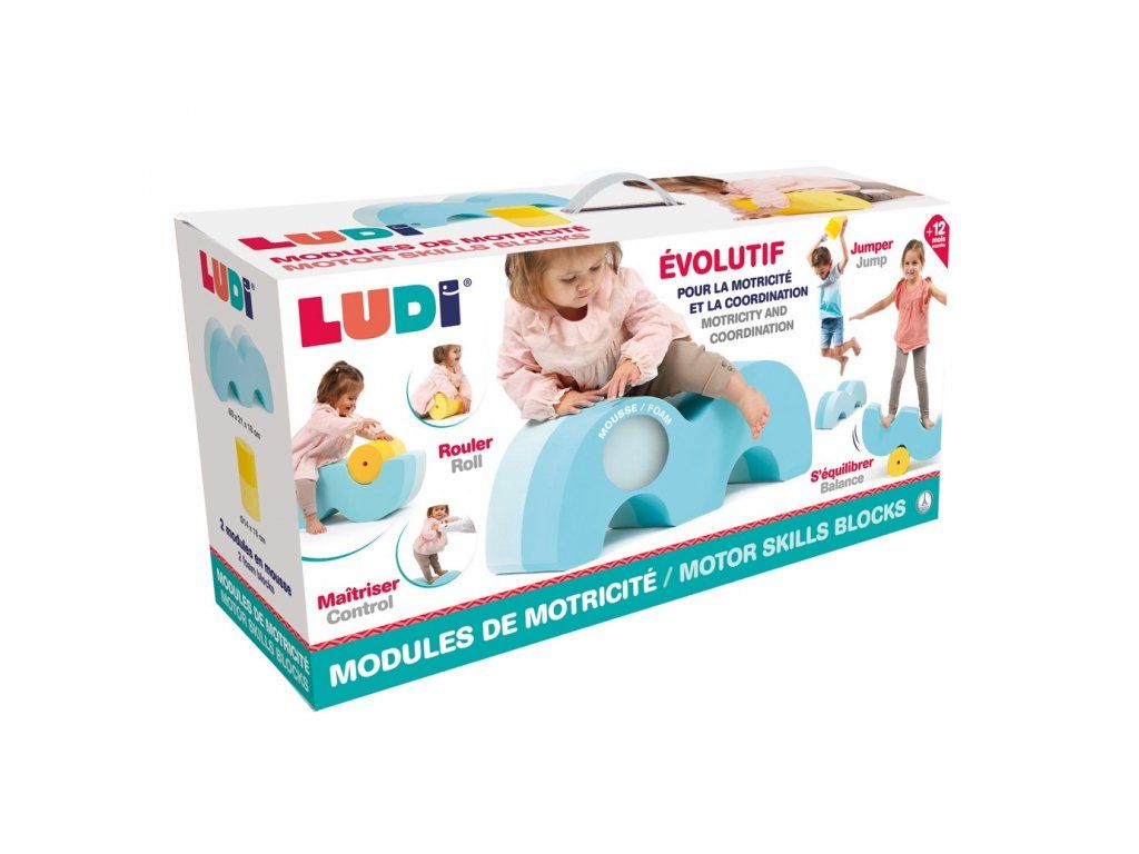 Penové motorické tvary Ludi sú dva ľahké a zároveň stabilné penové moduly, ktoré deťom pomáhajú bezpečne rozvíjať motorické zručnosti už od 12 mesiacov. Deti ich môžu využiť ako oporu pri prvých pokusoch o státie aj ako jednoduchú prekážkovú dráhu. Vďaka originálnym tvarom sa hra neomrzí – deti skúšajú nové spôsoby pohybu, trénujú rovnováhu a zároveň zapájajú fantáziu. Po hraní je možné moduly využiť aj prakticky, napríklad ako nízke sedadlo alebo stupienok.
