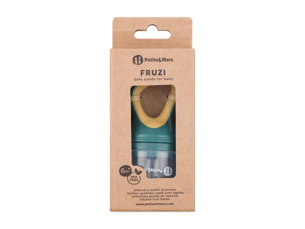 Bezpečné pevné jedlá pre bábätkoFruzi je ideálny dudlík na kŕmenie, ktorý pomáha vášmu bábätku bezpečne ochutnávať pevné jedlá a zároveň uľavuje od bolesti ďasien pri prerezávaní zúbkov. Perfektný pre deti od 6 mesiacov. Vyrobený zo 100 % bezpečného silikónu. Fruzi umožňuje podávať ovocie, zeleninu alebo varené jedlá v najvhodnejšej forme pre bábätká. Malé otvory v silikónovej špičke prepúšťajú malé porcie jedla kontrolovane, čím znižujú riziko prehltnutia veľkých kúskov a zabezpečujú bezpečné kŕmenie.