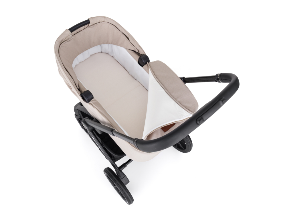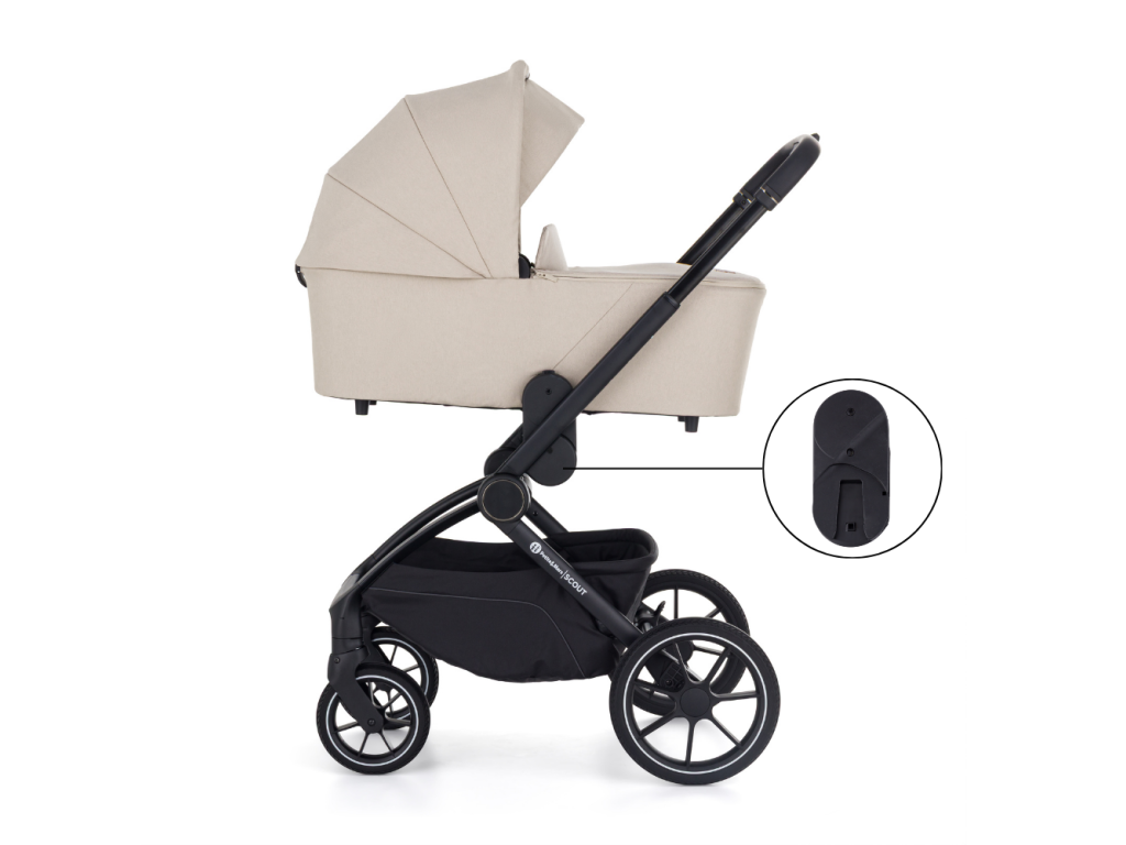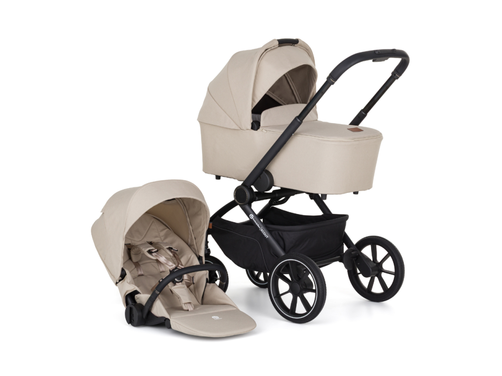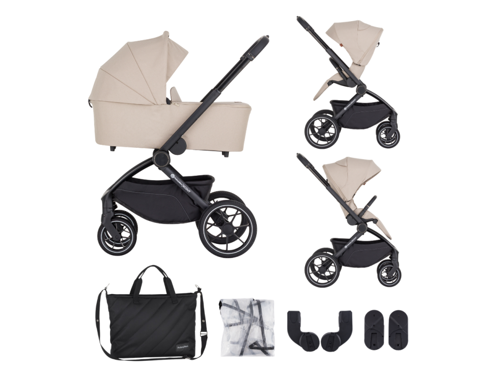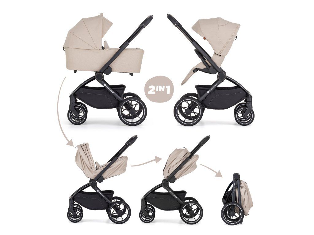 Vďaka jednoduchému skladaniu a premyslenému naklikávaciemu systému s poistkou zvládnete prechod medzi vaničkou a športovou časťou rýchlo a bezpečne. Konštrukcia je pevná, kočík sa výborne ovláda a v každodennom tempe oceníte aj jednoduchú manipuláciu. Veľké PU kolesá vpredu aj vzadu spolu s miernym odpružením zabezpečujú pohodlnú jazdu aj na nerovnejšom povrchu.