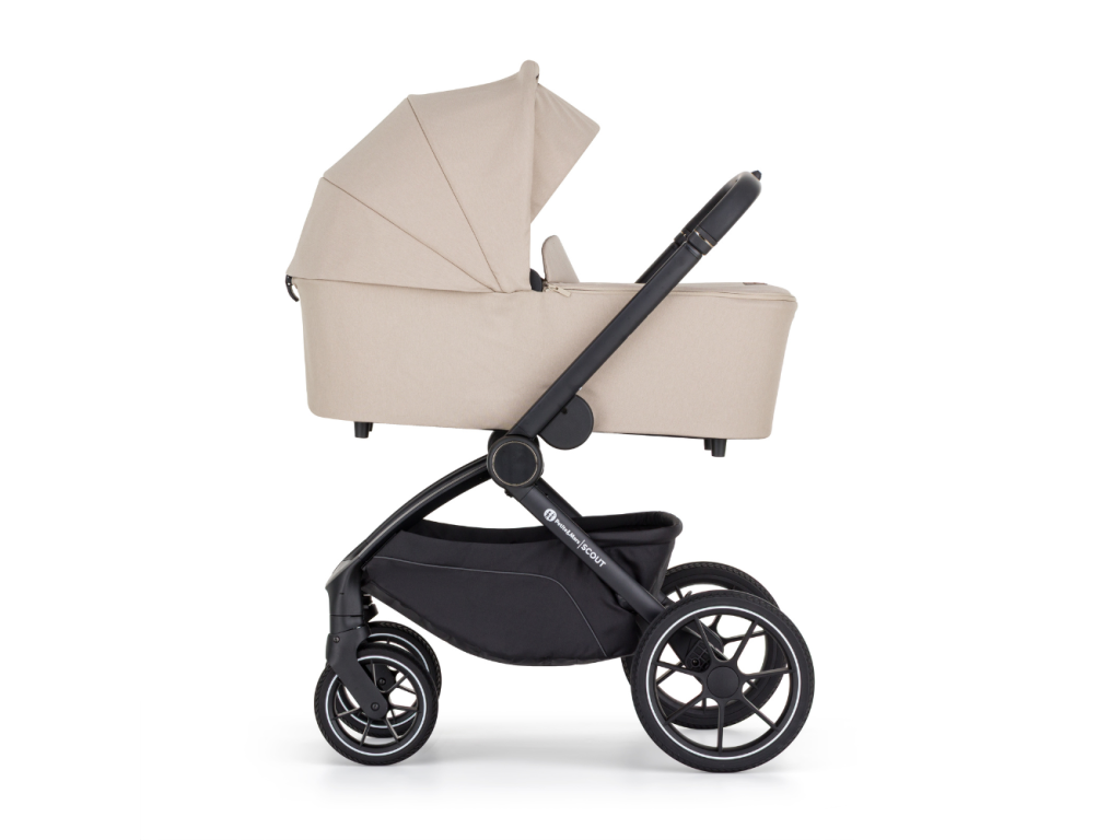 SCOUT je kočík pre rodičov, ktorí chcú byť v pohybe a zároveň mať istotu, že dieťatko má pohodlie od prvých dní. Je to plnohodnotná dvojkombinácia 2v1 – stabilná, elegantná a praktická – pripravená do mesta aj na výlety.
