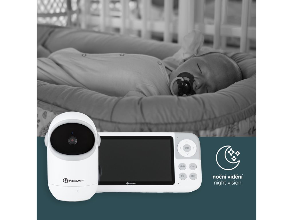 Pestúnka je vybavená kamerou s možnosťou diaľkového ovládania, takže máte obraz vždy pod kontrolou, nech sa dieťatko pohne kamkoľvek. Systém je rozšíriteľný až na 4 kamery, čo z neho robí ideálne riešenie pre viacero miestností alebo pre viac detí.