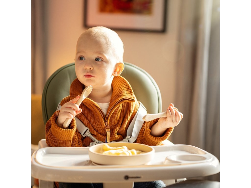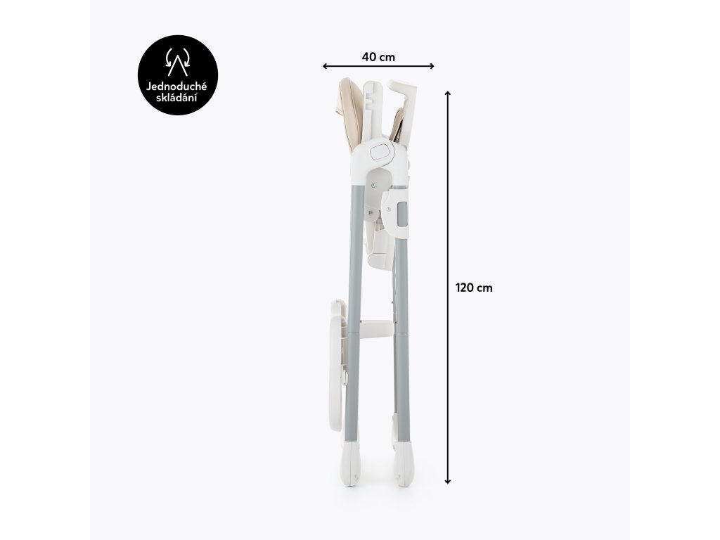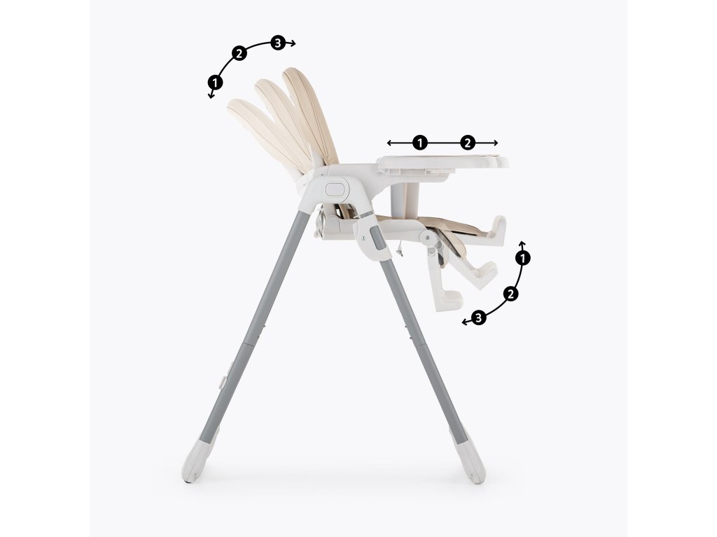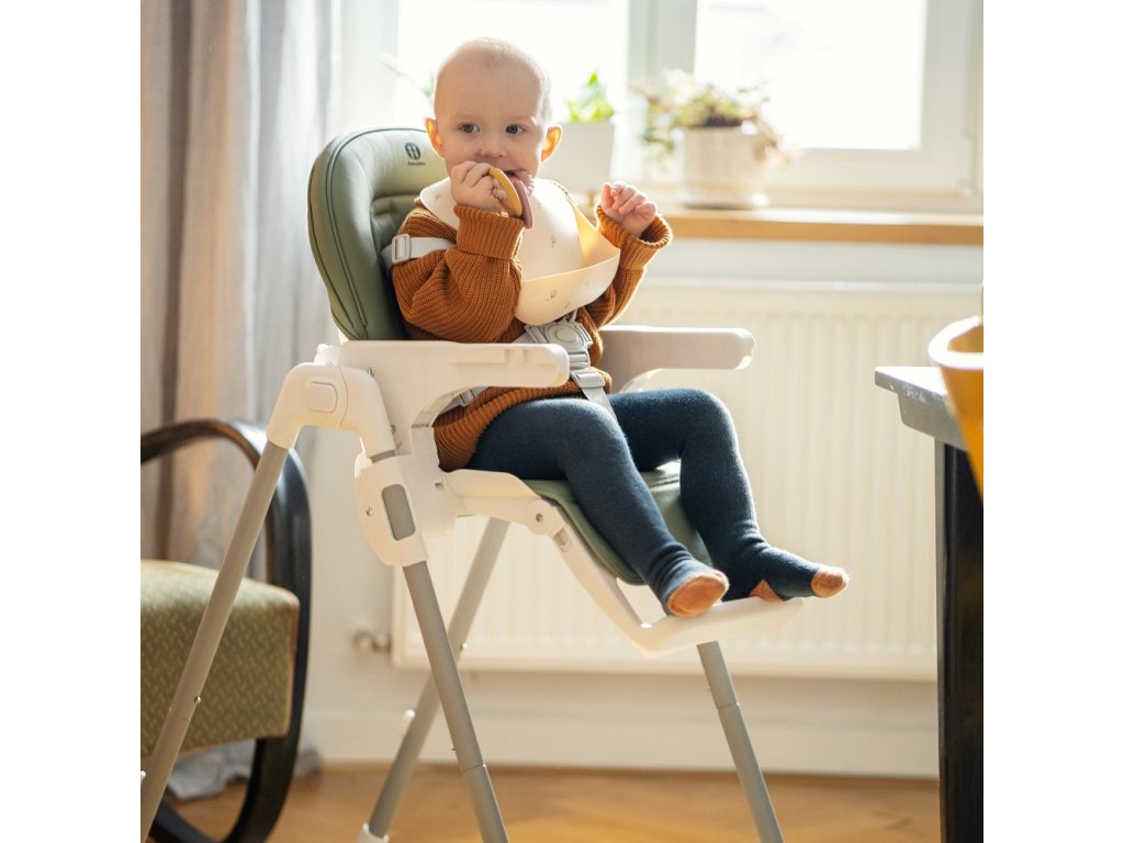 Starostlivosť o životné prostredie, ktorú sme pri tvorbe tejto stoličky zohľadnili, nezatienila najdôležitejšie aspekty výrobku - bol totiž navrhnutý tak, aby čo najbezpečnejšie zlepšil každodenný život dieťatka aj rodičov. Stolička má všetky funkcie, ktoré uľahčujú každodenné kŕmenie: Je možné ju ľahko zložiť a vyčistiť, má 5-bodové bezpečnostné pásy, nastaviteľnú opierku chrbta, nastaviteľnú opierku nôh, nastaviteľnú výšku, dve polohy pre podnos s hornou časťou, ktorú možno umývať v umývačke riadu. Stabilná konštrukcia stoličky zaistí bezpečnosť vášho dieťaťa bez ohľadu na to, aké je aktívne alebo pohyblivé. Vysokokvalitné vyhotovenie, premyslená konštrukcia, moderný a originálny dizajn a kompaktné skladanie sú nadčasové vlastnosti, ktoré zabezpečia pohodlie pre vaše dieťa od okamihu, keď sa naučí sedieť.