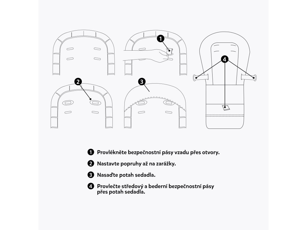 UPOZORNENIE! Nikdy nenechávajte dieťa bez dozoru. Uistite sa, že všetky popruhy sú správne nasadené. Nepoužívajte stoličku, pokiaľ nie sú všetky komponenty správne namontované a nastavené. Nikdy nepoužívajte bez zaistenia dieťaťa bezpečnostnými popruhmi.