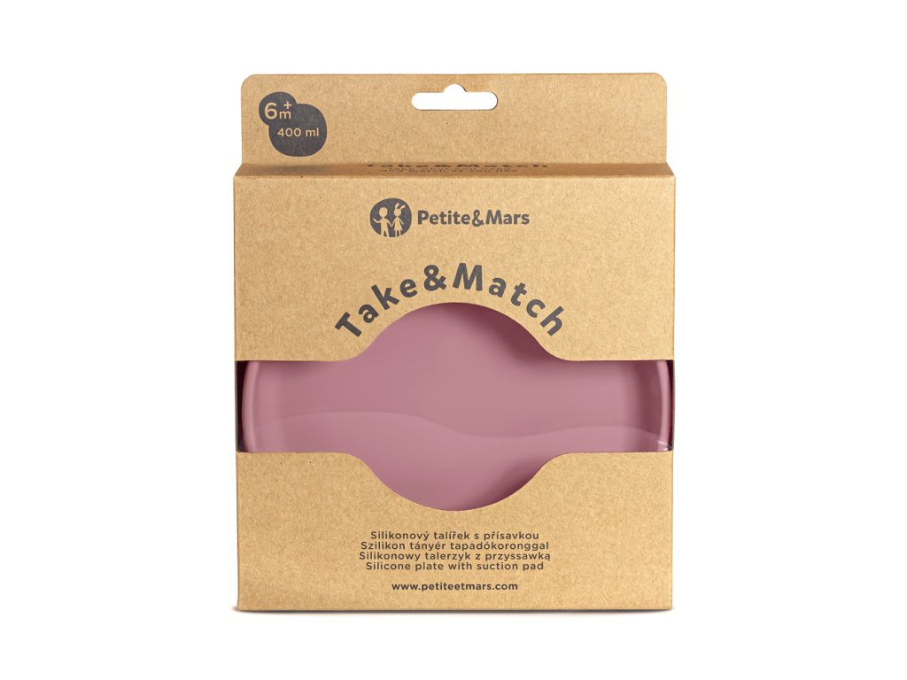 PETITE&MARS Tanier silikónový s prísavkou Take&Match Dusty Rose 6m+